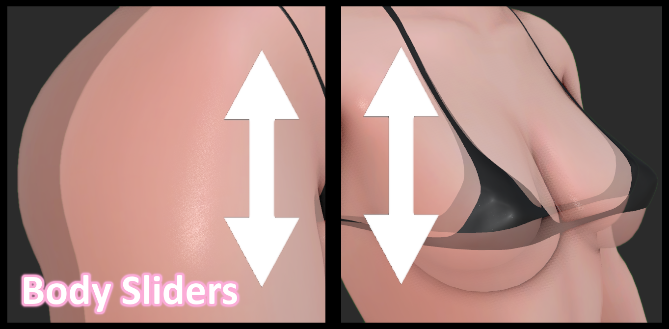 - The female version comes with bigger chest size, wide hips, female bits only.