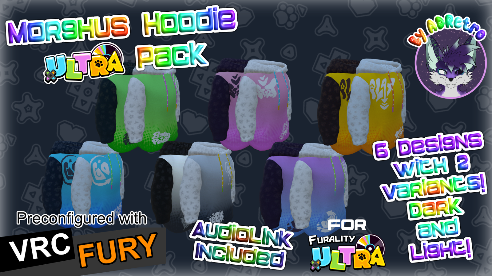 2.1.0or higher (Required for reactive music effects) - Base Asset: Morghus Hoodie (Not included. Get one for your supported avatar base here: https://morghus.gumroad.com)