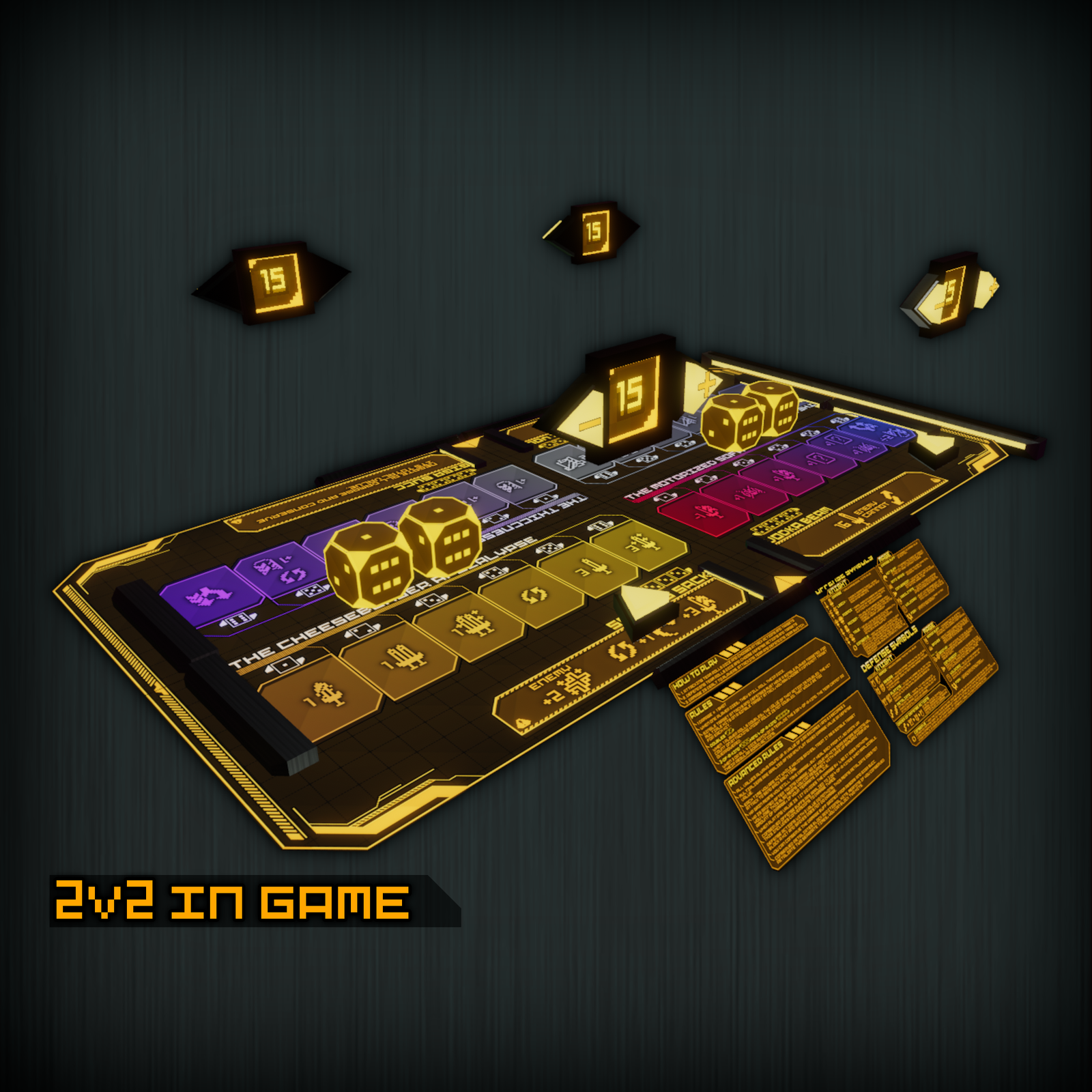 A 2 versus 2 team game. This game includes 6 boards choices for every selection and more damage and defense types than Shot Duel. Some 3-of-a-kinds and 4-of-a-kinds can introduce new mechanics to the game. It generally will take a few games to get a good understanding of this game.