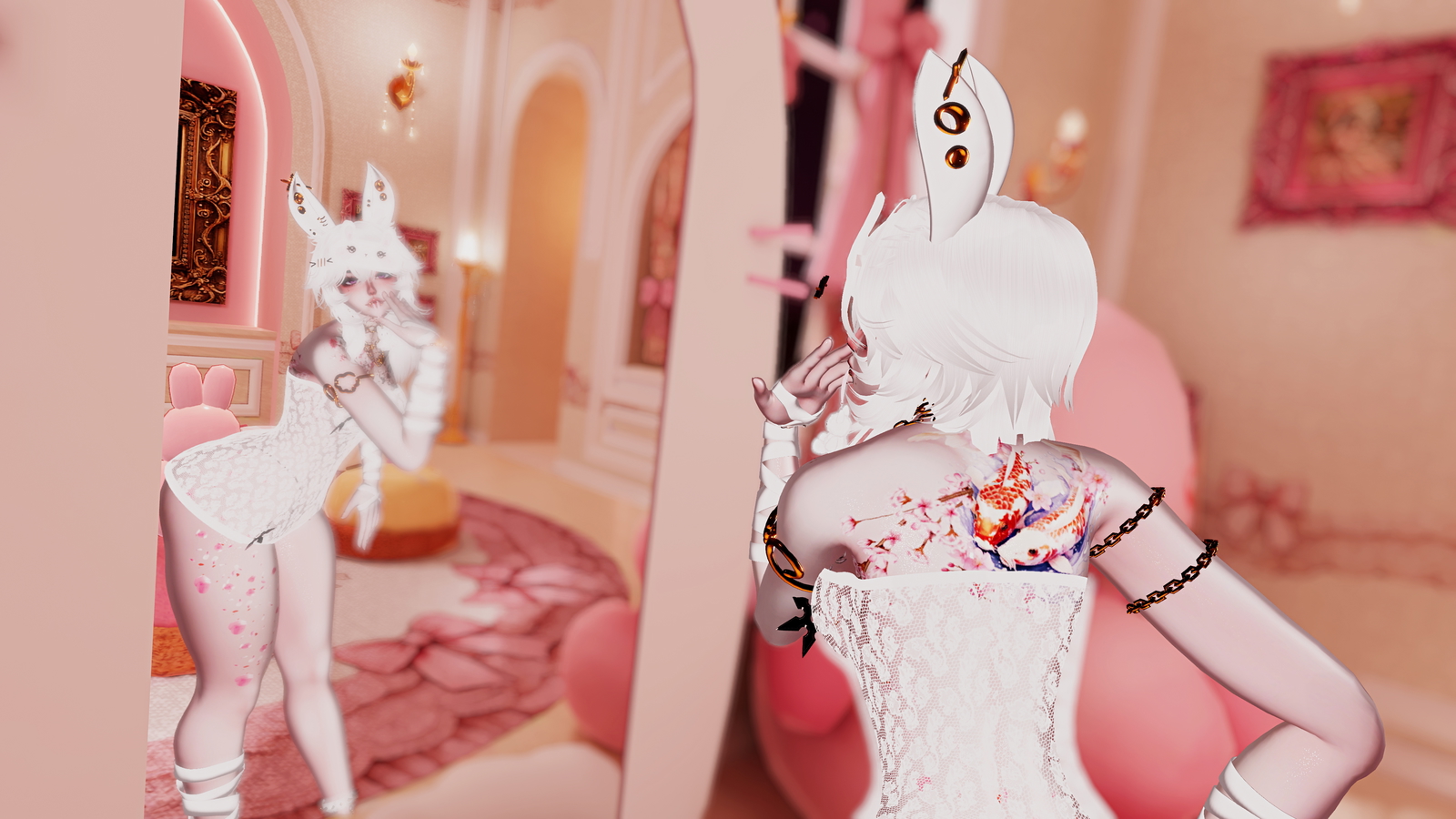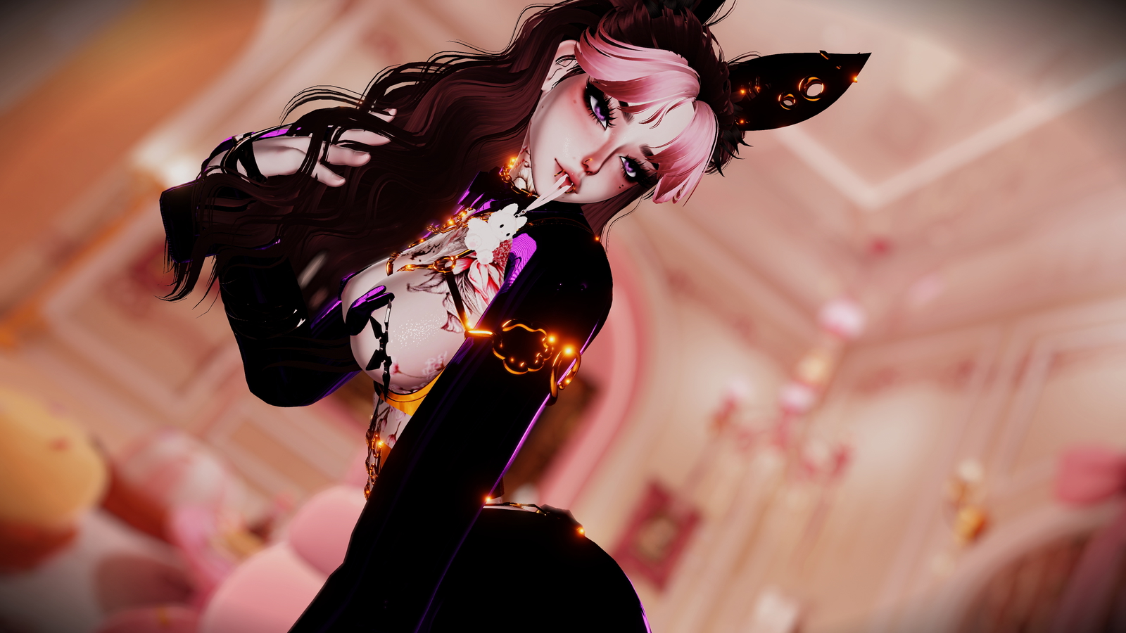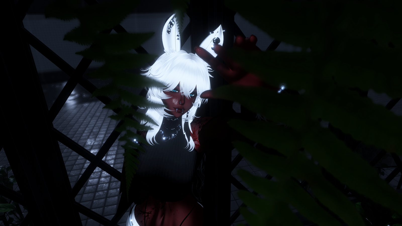 Acc: Fishnets, Glasses, Arm Wraps, Neck Chain, Leg Wrap, Bracelets, Thigh Fishnet Stockings. Arm Chains,Harness, ZZZ, Bunny Mask, Bunny Mouth Keychain, Bracelet, Goth Bunny Ears, ninja stars