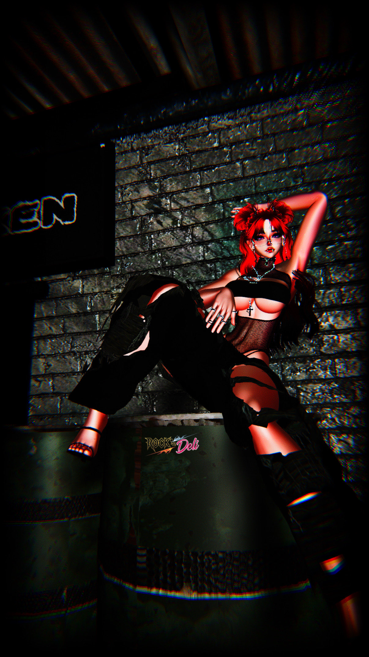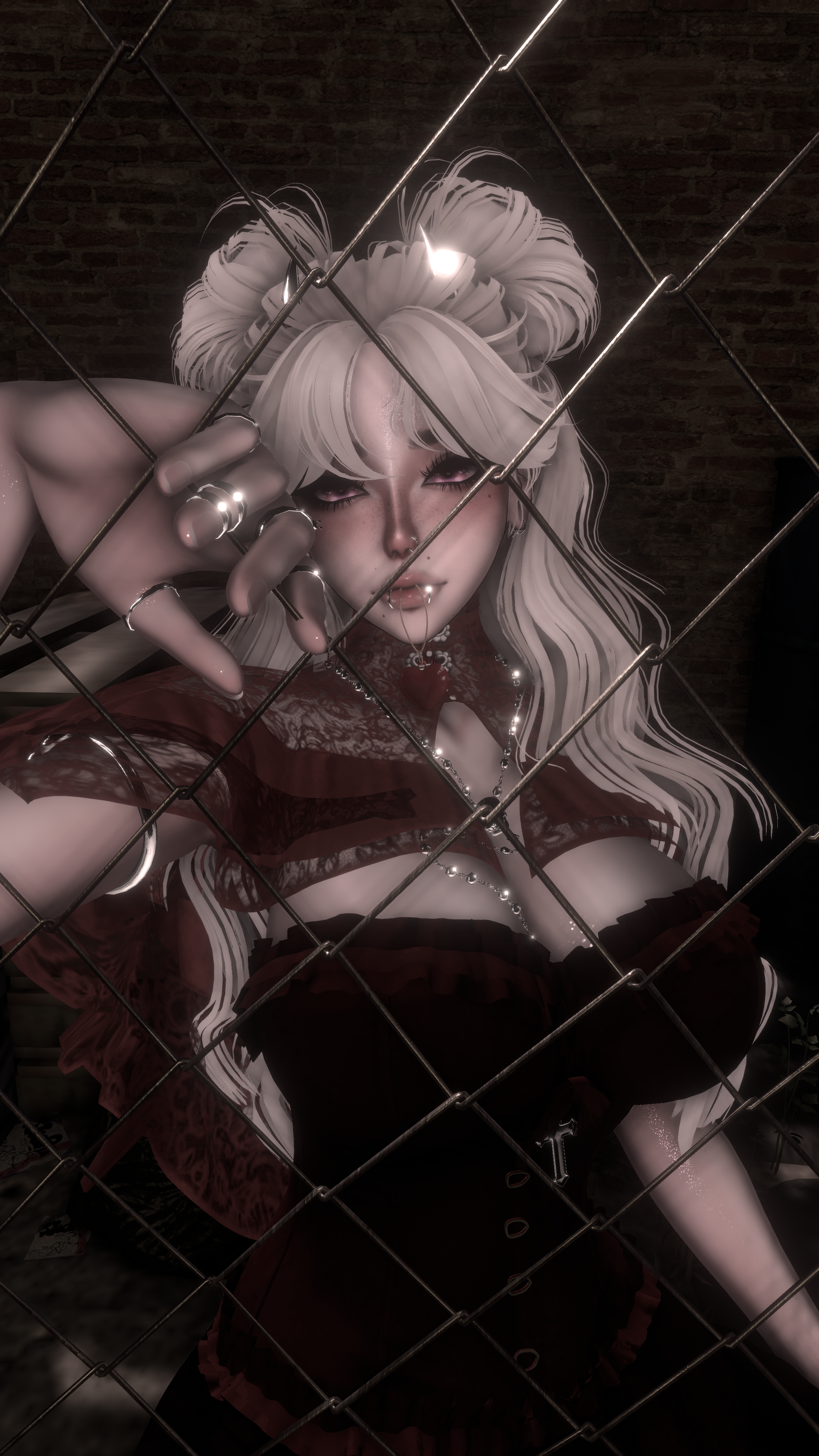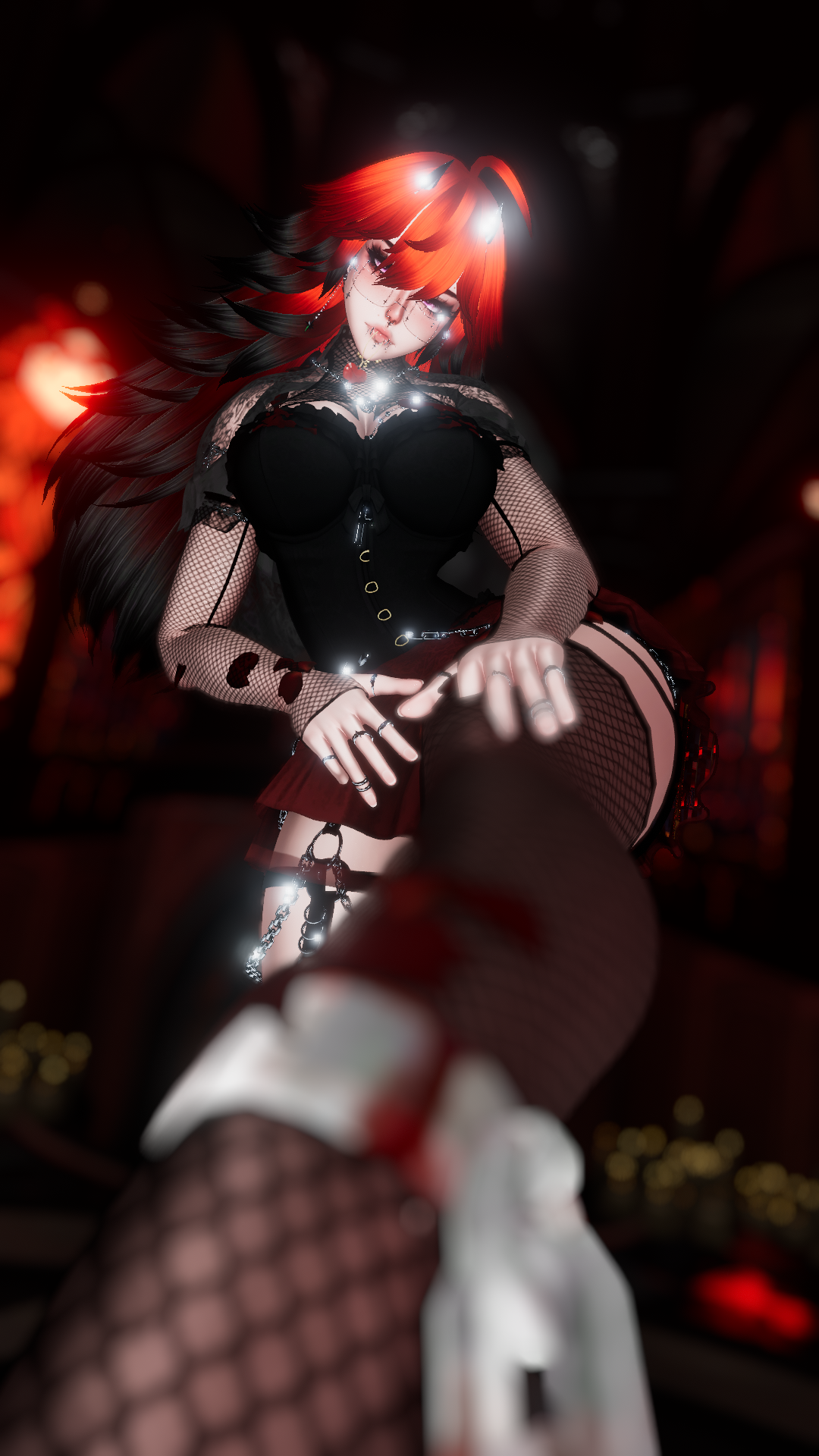 Acc: Fishnets, Glasses, Thigh Fishnet Stockings. Arm Chains,Harness, Body Roses, Rose Blindfold, Hip Chains, Fishnet Bodysuit, Necklace, Piercings,Wings, Aura, Horns, Pearl Belt