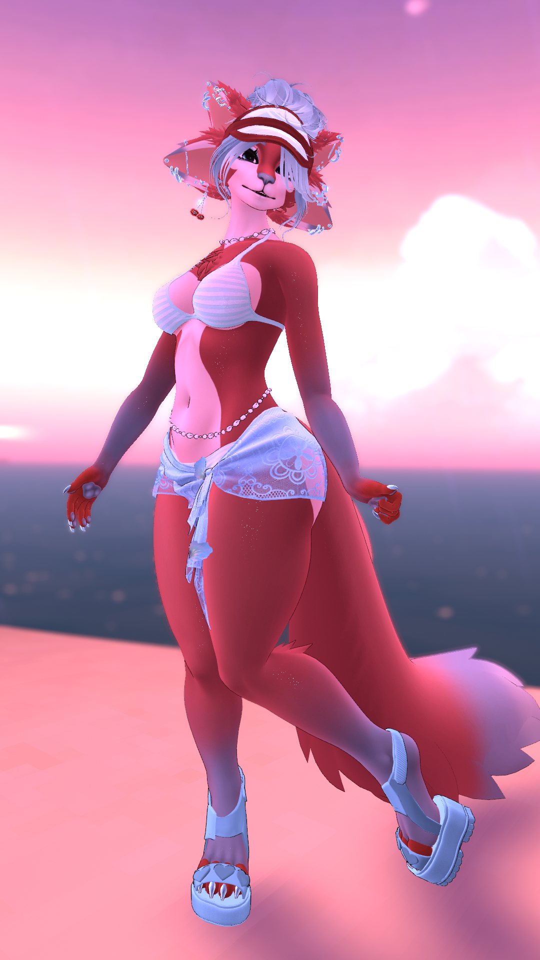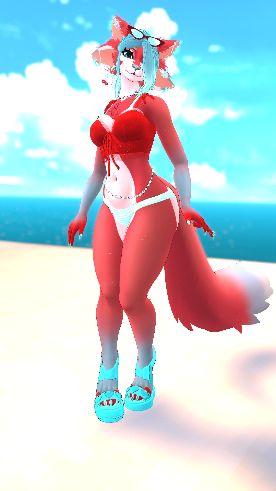DISCLAMIER : This is a very simple avatar to start off my store, her toggles are all put together in unity using VRCfury please keep that in mind before purchasing if you do not have much knowledge with VRCfury. She works fine but editing toggles could be an unfamiliar process if you have never done them with the VRCfury tool.