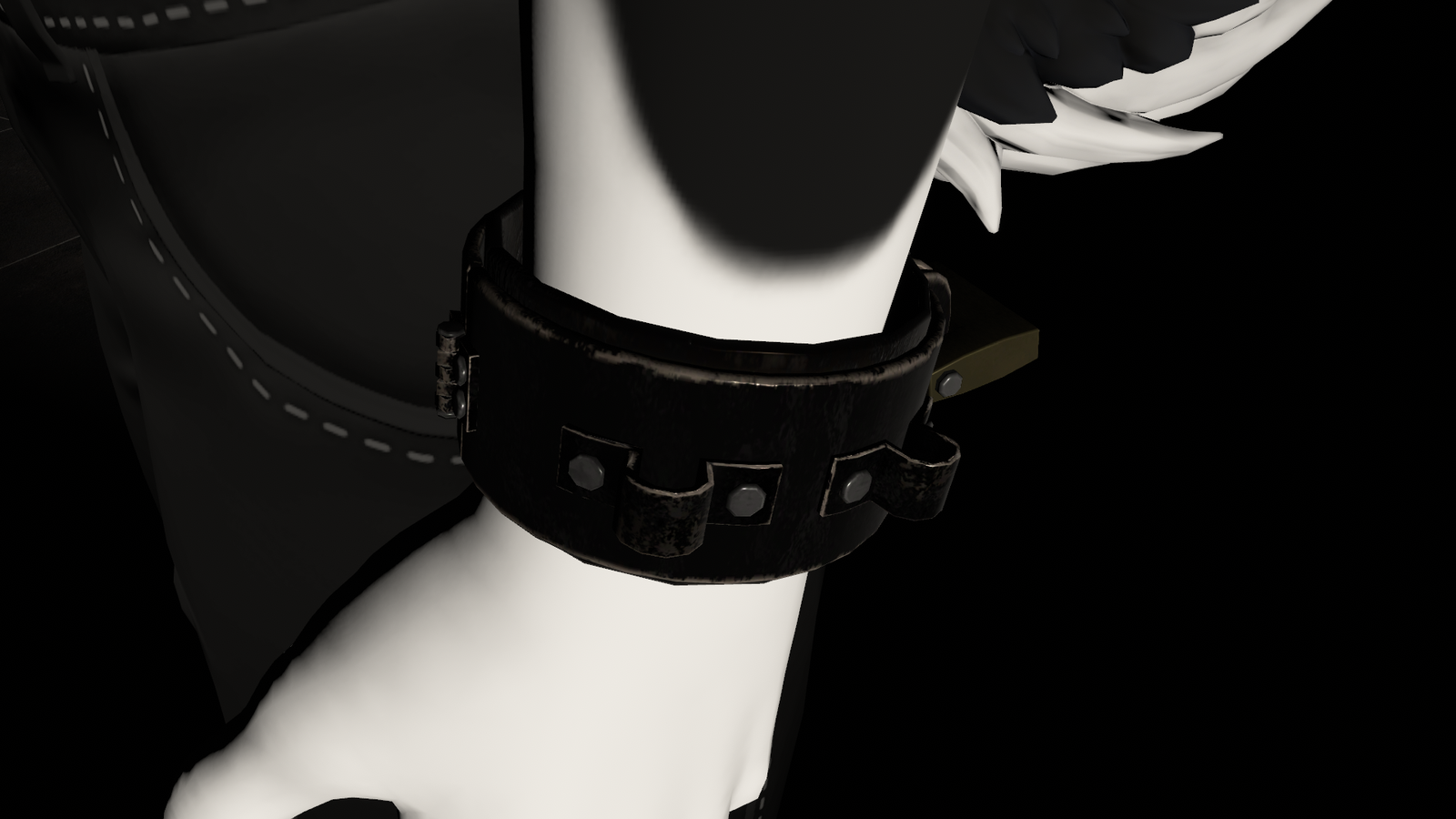 This is a heavy duty collar and cuff set made currently for the Winterpaw Masc Canine. Minor modifications using VRCFury should allow it to work on any avatar that has a neck, arms, and legs though. Could also just be used as a static object in world. Provided video shows current physics.