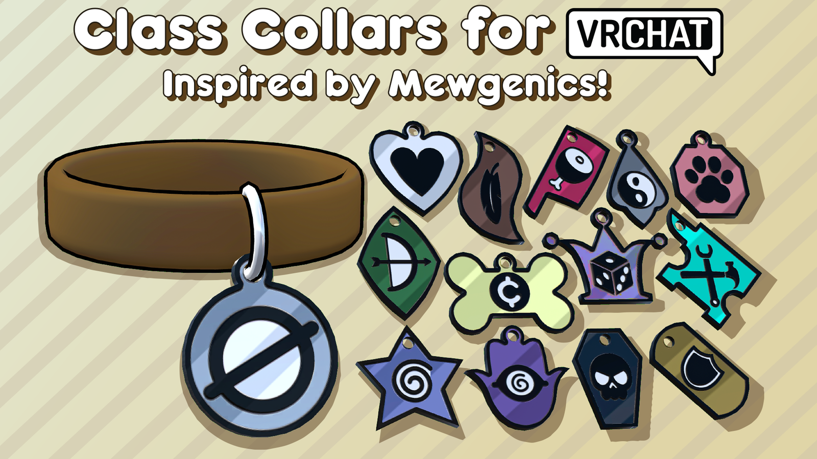 Show off your avatar's RPG class with this set of collars and tags! These collars are made to be easily customizable and should fit on any avatar! PC & Quest versions included.