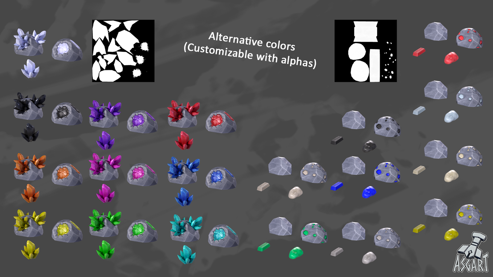 The mineral veins and crystal elements are fully customizable.