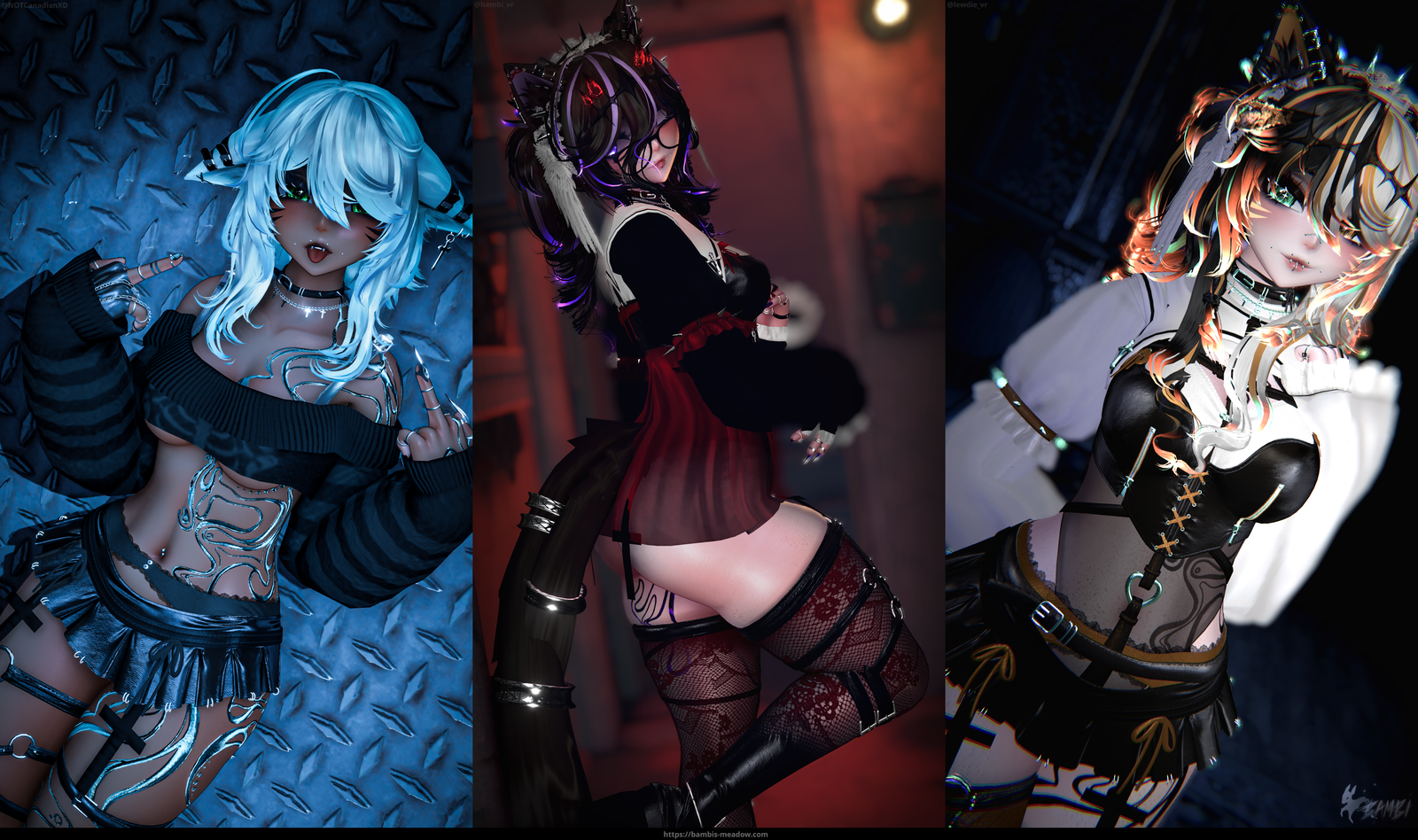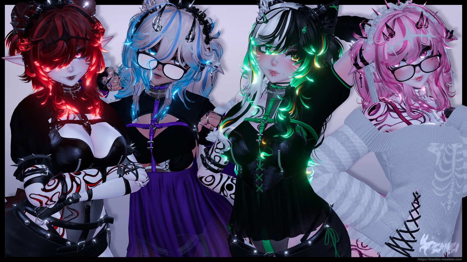 Base (NO COMMERCIAL REUSE) | Body Tex – (NO COMMERCIAL REUSE) | Body Blush | Body ”DLC” (not sold anymore) | Head (NO COMMERCIAL REUSE) | Eyes | Lashes | Body Wetness | Body Freckles | Tattoos | Bush | Hair Tex | Default Bangs | Alt Bangs | Hair Floofs | Long Hair | Short Hair | Pigtails (Nitro) | Braids | Ears | Tails | Headdress | Wings | Outfit | Body Harness | Glove | Dress | Bikini | Sweater | Laces | Tapes | Leg Harness | Boots | Horns | Shrug | Glasses | Garter (not sold anymore) | Hand Harness | Thigh Harness | Pants&Accessories | Bracelet | Crown | Bodysuit | Sleeve&Straps | Heels | Flowtoy | Locomotion | Better/Index Gestures | Extra Animations (Nitro) | Config | Limb Scaling | Particle Flowtoy | VRCBreeze | ASL | Hair Normals | Unity QOL | Bodysuit | Face Tracking | Makeup | Chibi Art | FX Logic