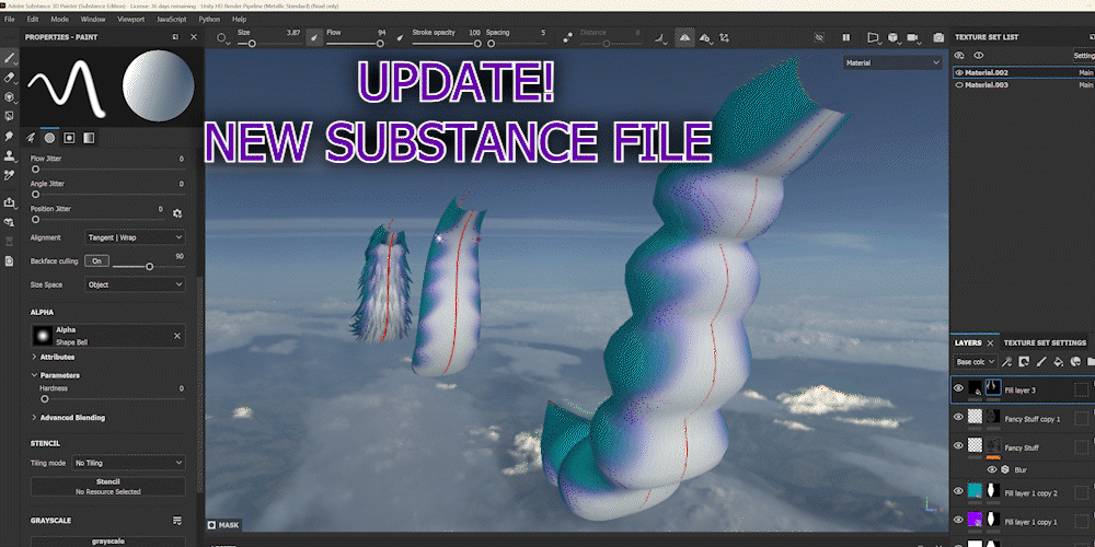 Included in the purchase is the substance painter files so you can re-texture the tail and bands to your liking. SP band files have masks ready for you to just change the color and export to make it a breeze to texture.