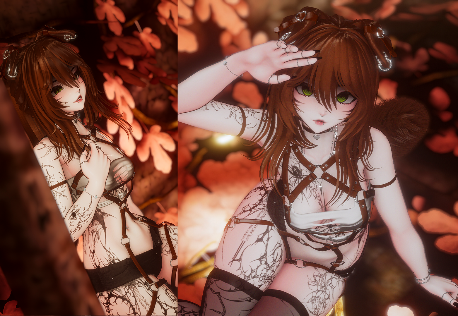 ➳ Body: Skin Tone slider with lighter palms/soles for darker skin, Tattoos, Butt/Boob size sliders, Black Lip, Black Sclera, Whisker Markings, White Lashes, Face Shadow, separate Hue/Saturation sliders for left and right eyes