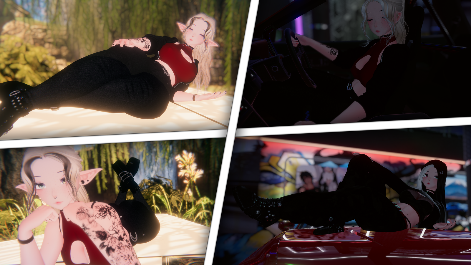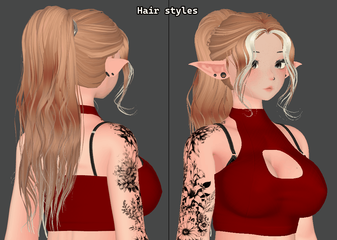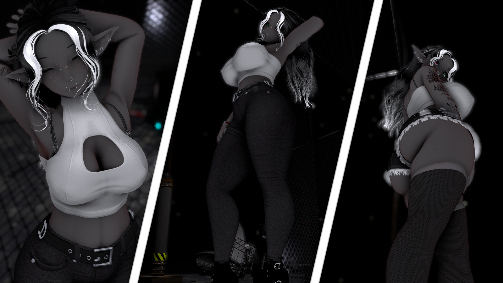 - Grey skin (dark elf vibe) - Boob-arm collision