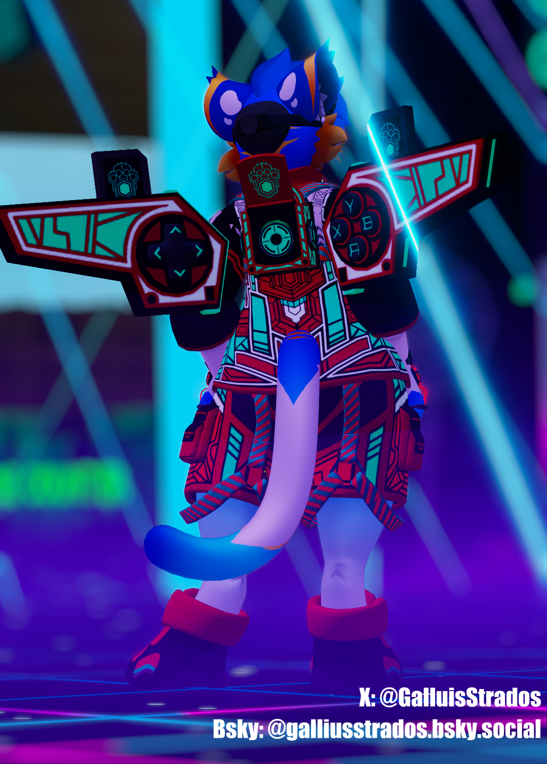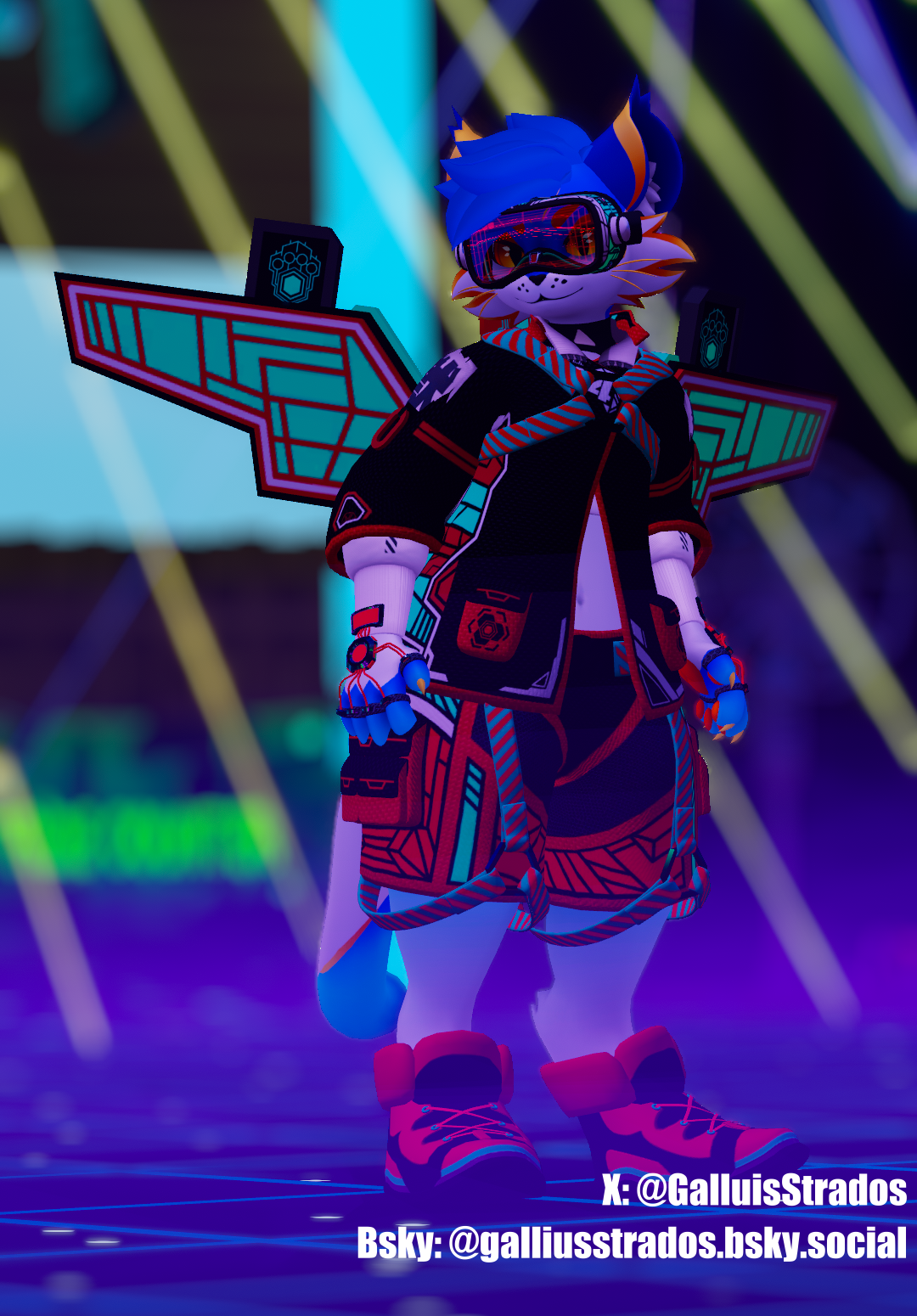 Up your game with this next level Arcade outfit to show off your inner gamer! This asset comes with 6 meshes and has vrc built in to add this asset to your avi and upload within minutes! Toggle on the wings and headset power with custom visual and sound effects and watch it all bootup to life! Asset also comes with audiolink for all you crazy cats what love to party!
