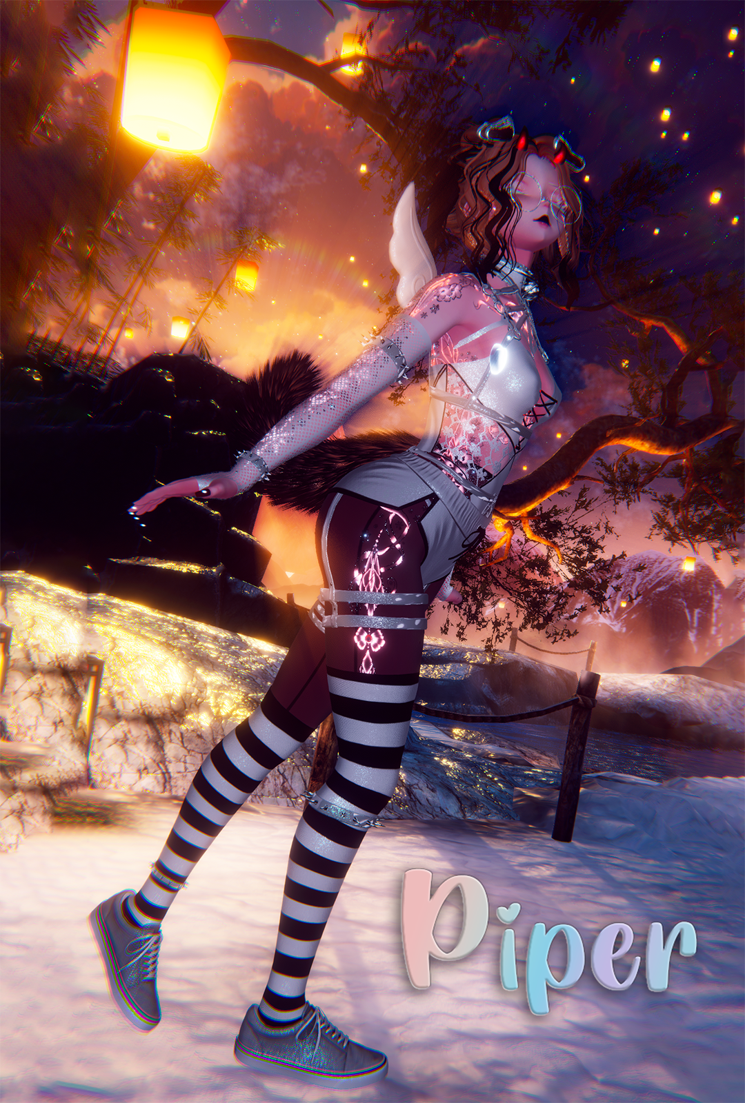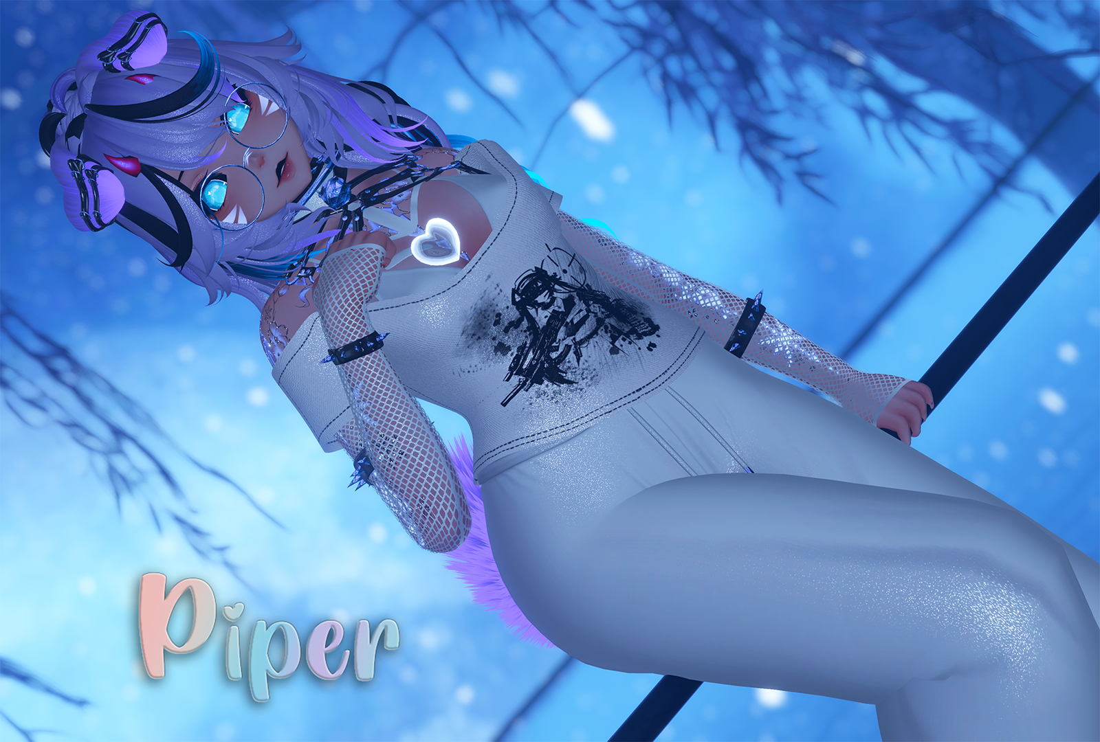 Accessories - Heart Leg Garter - Calbia Pasties - Aantara Top and Bottom Harness - NeliaVR Body Straps - Weeeby Bandaids Arm Fishnets - StupidMutt Angel wings and Halo - Stupid Mutt