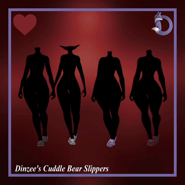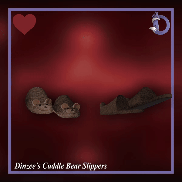 dinzee, vrchat, vrchat accessory, slippers, cozy footwear, bear themed, cuddle bear, cute, soft aesthetic, comfy, cozy outfit, valentines day, valentine accessory, casual wear, fashion accessory