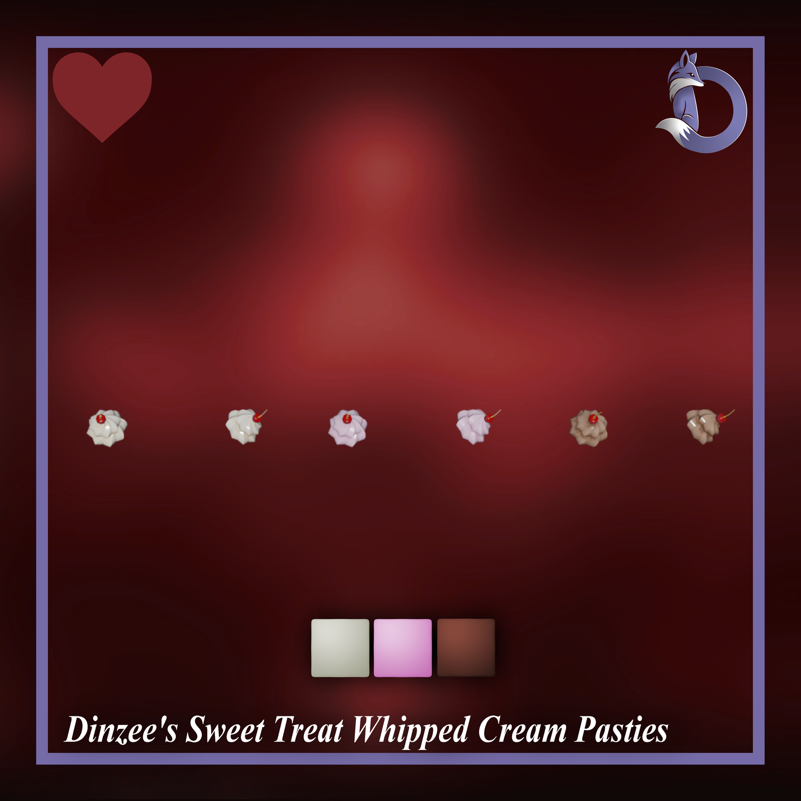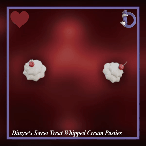 dinzee, vrchat, vrchat accessory, pasties, whipped cream, sweet treat, dessert themed, valentines, valentines day, valentine outfit, cute, playful, flirty, novelty accessory