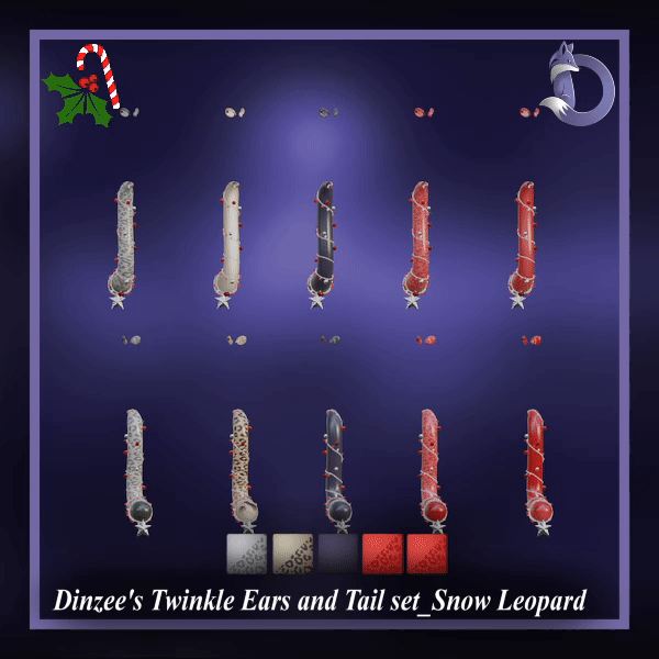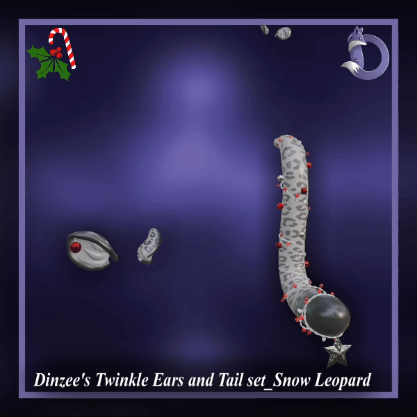 Dinzee's Twinkle Ears and Tail set - Snow Leopard- Christmas 2025 (Jinxxy)