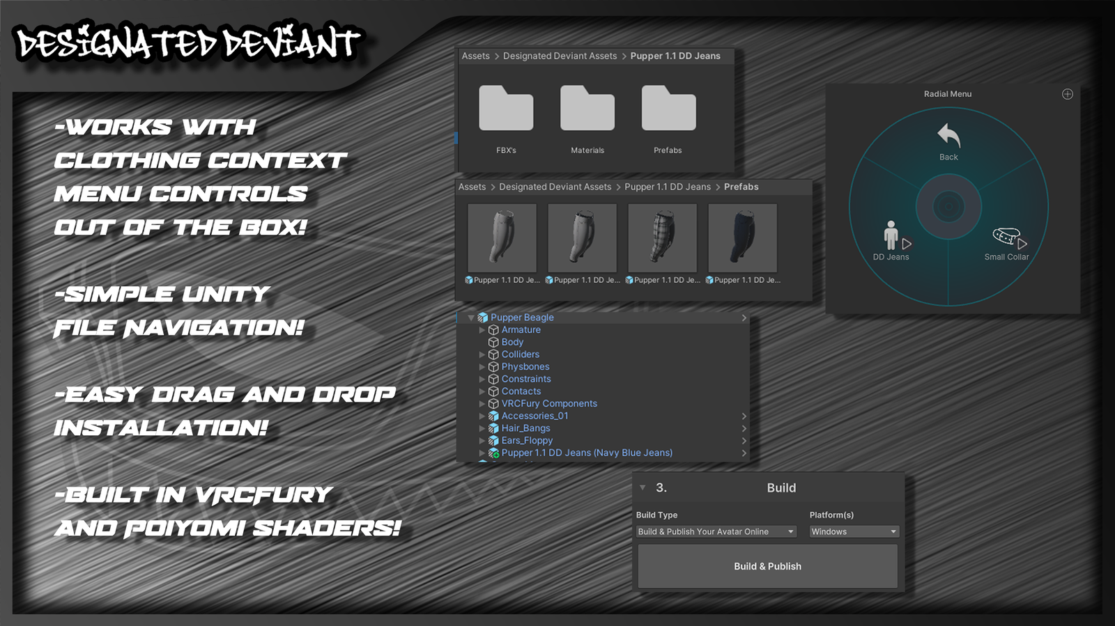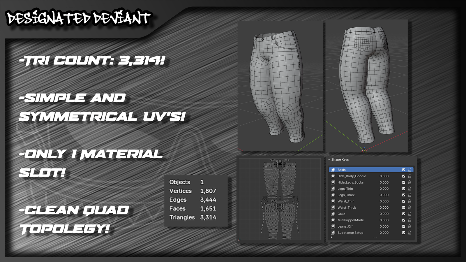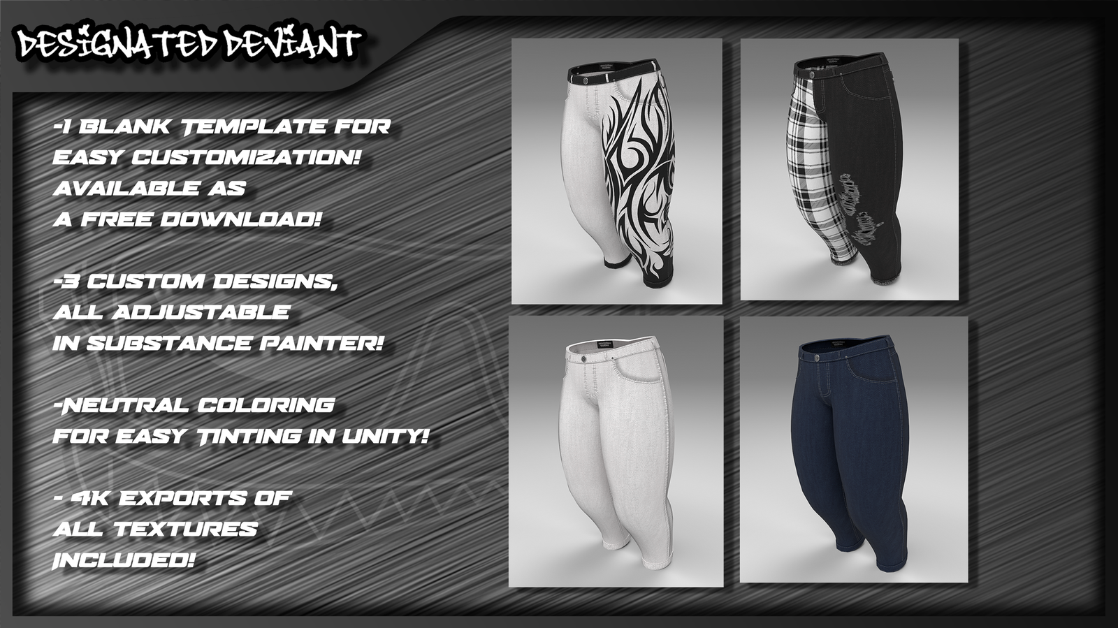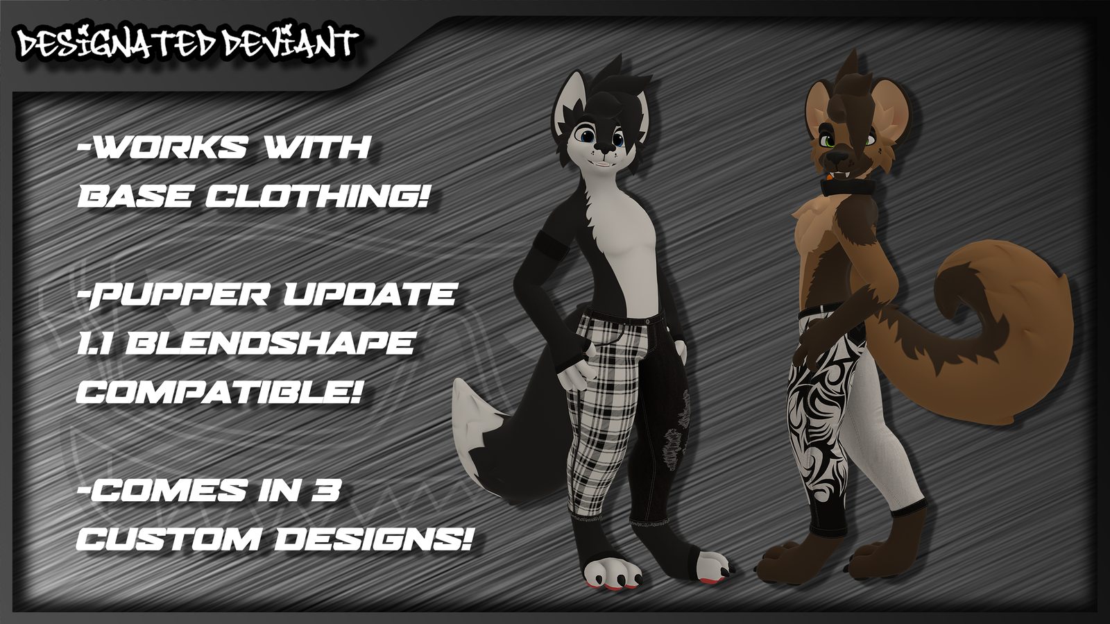 - Compatible with other Designated Deviant clothing assets!