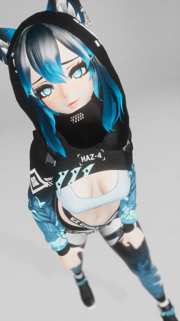 This package includes the Husky ready-to-upload PC avatar. An athlete amongst our avatar collection, this girl rocks the athleisure-wear style with ease. The Husky's layered outfit is ready for dressing/undressing and color customization. Use the handy color-customization dials to personalize your eye color, hair color, hair tips, and overall outfit. Sliders include: Eye color, Hair color/saturation/brightness, Tip color/emission strength, and outfit color, saturation, and brightness. The outfit can go monochrome too and crank that brightness way up for fully white textures and down for fully black textures. Play around with your many possible looks!