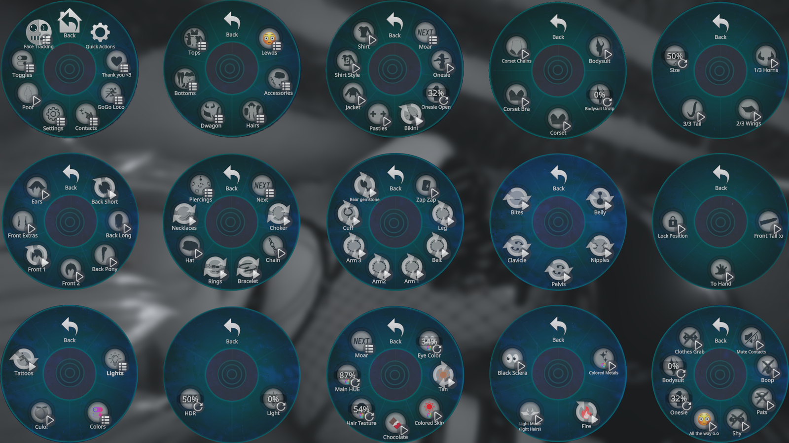 Interactions: Bodysuit unzip, onesie open, shy fingies, pats, boops, grabbable gemstone :)