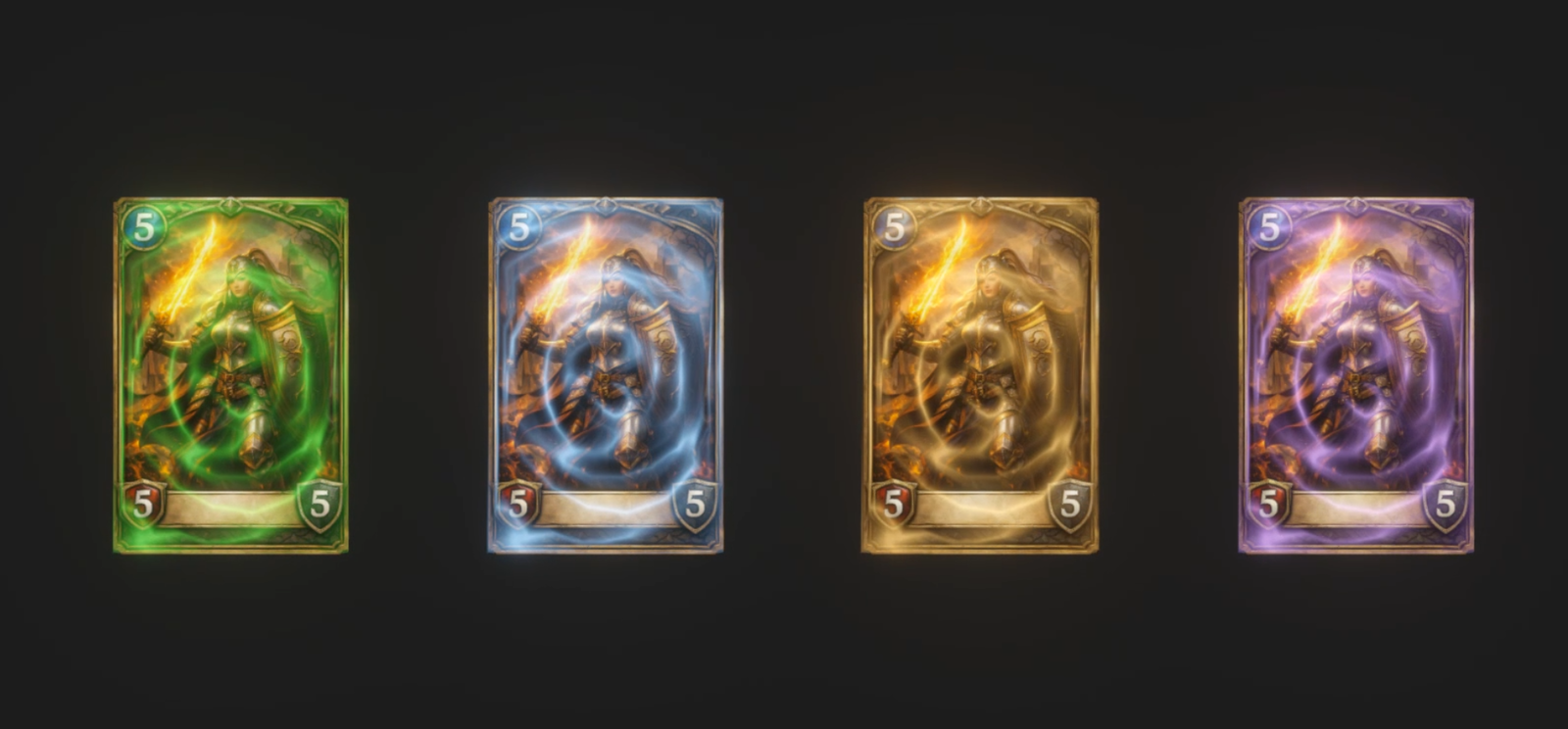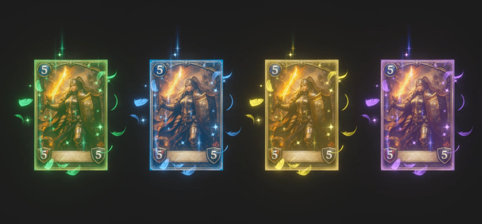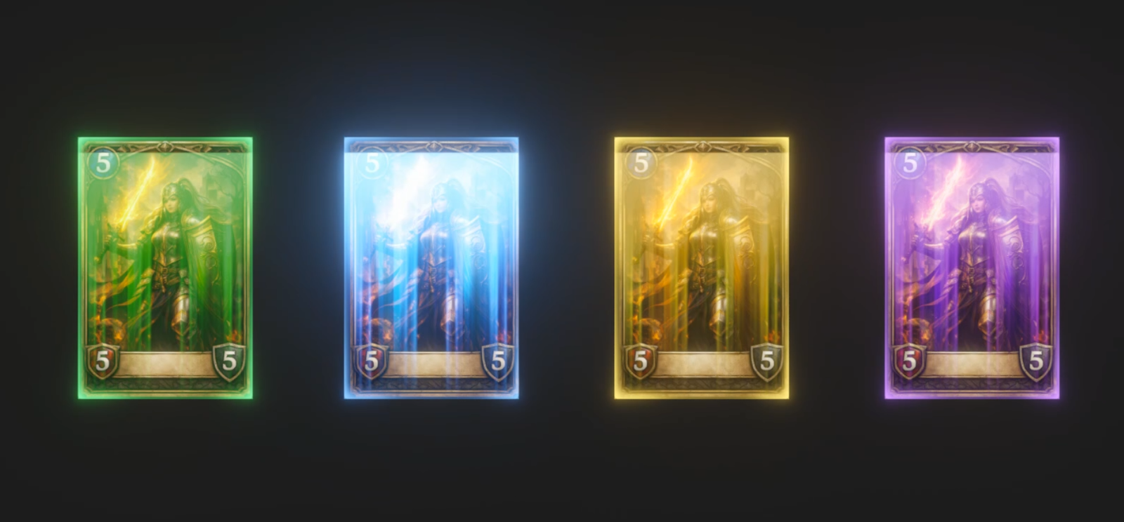 Card effects using Unity's particle system, including 15 different effects and 4 colors.