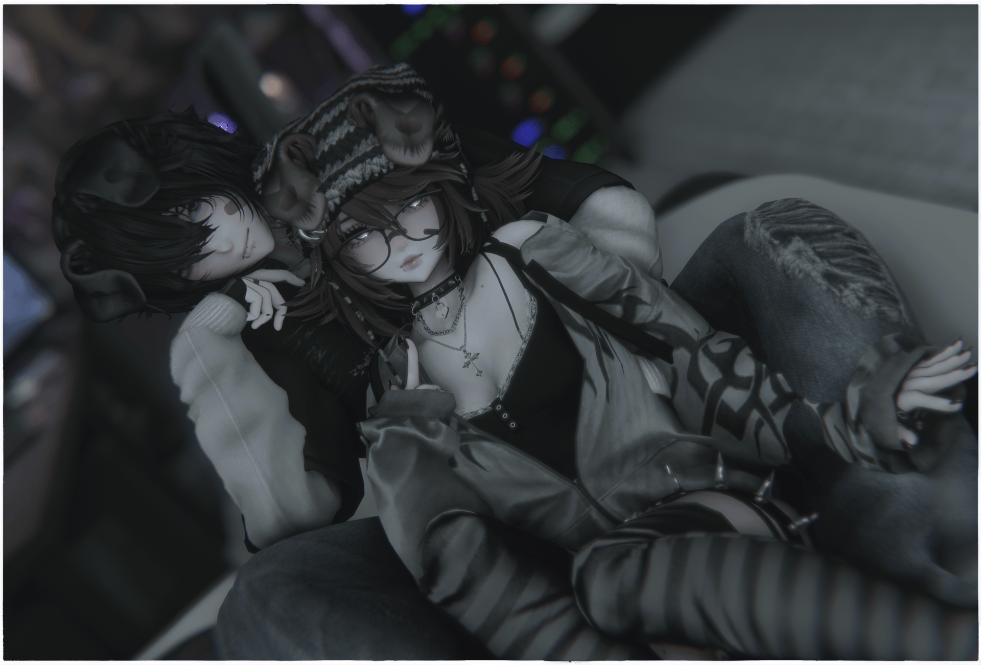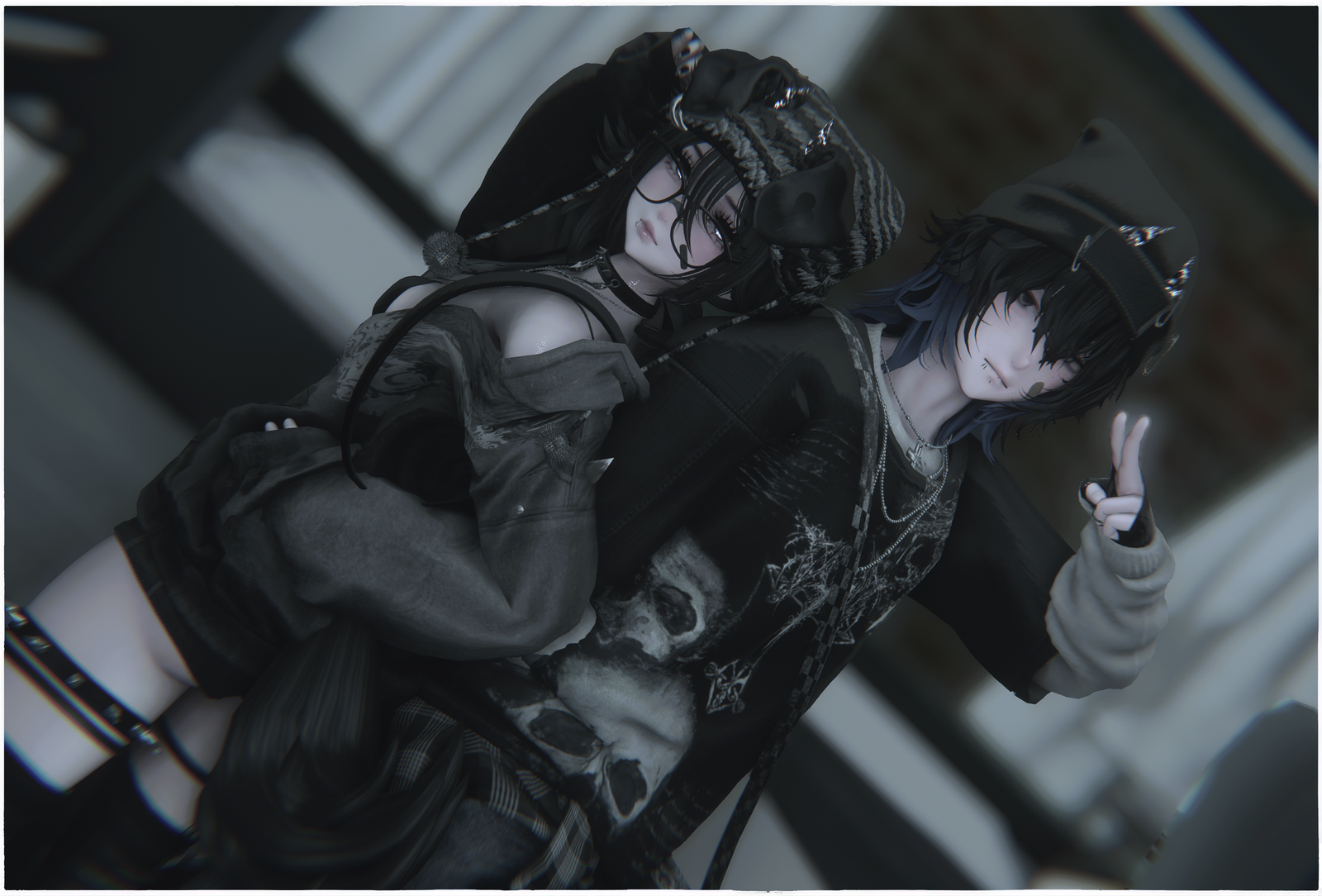 accs: puppy ears Whituu, spiky garter Cringy, horns Mynx, skateboard slvt, piercings Devilishsly, backpack and sleevewarmers seo's lair, nails yuri, collar, piercings, choker necklace and shoes sebs