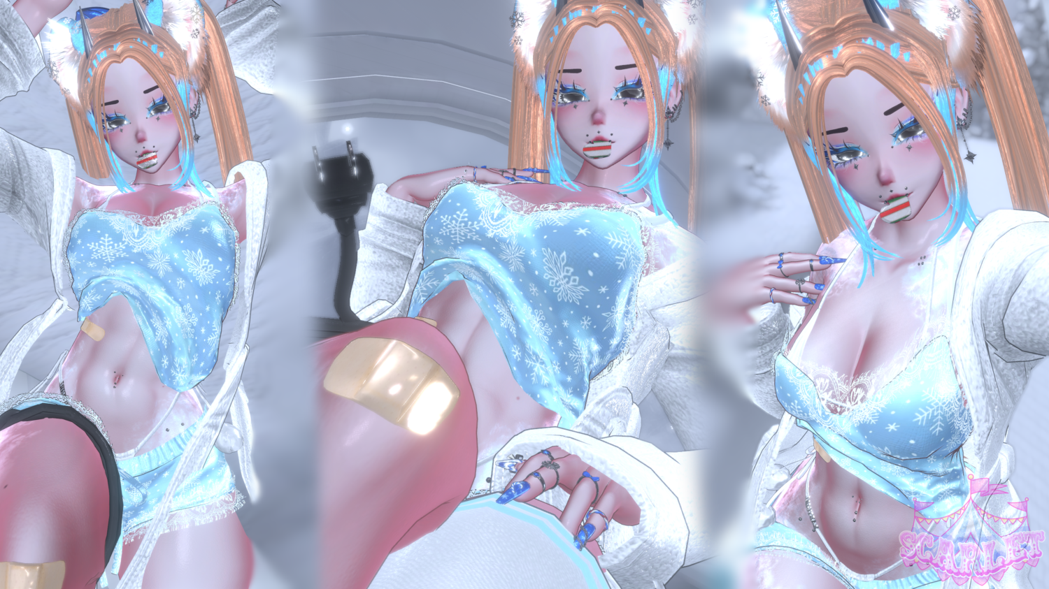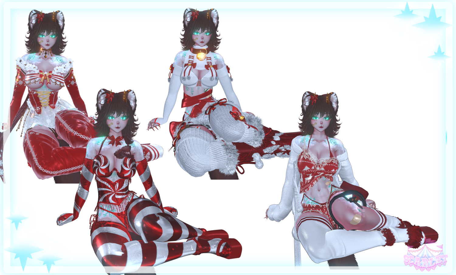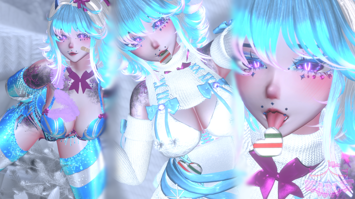 Body edited: Zinpia Head edited: Starlynn Eyes: n02 Face Piercings: Skulli Body Piercings: aaii0 Small Horns: Naudine Bow Garters: catakitty Nails: yaoomi Christmas set: Vinuzhka Candy Cane Top/Corset/Stocking/Gloves/Back Feathers/Hand Feathers/Head Feather: Minty Sweet by Nessy Slumber Top/Shorts/Robe/Socks/HairDryer: Slumber Set by Nessy NeckRibbon, Fluff Heels, Corset Dress: MEOWCH by Nessy Animal stuff, Skirt, Boots, Band-Aids, Bra, Panty: SnowyLeo by Nessy Knit Top/Knit Crop Top/KnitSleeves/Knit Stockings/Bow Panty/Heels/Waist Bow: Cringy Long Hair/Braid Hair/Short Hair: Saikura Saikura Saikura Bun Hair: Crozzie Rings: HunnySenpai#9955 Christmas Rings: Kenvi Hair Texture: FromTheGraves Succubi stuff: Yamuvr Cookie Flow Toy: KitrionsGrove
