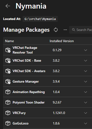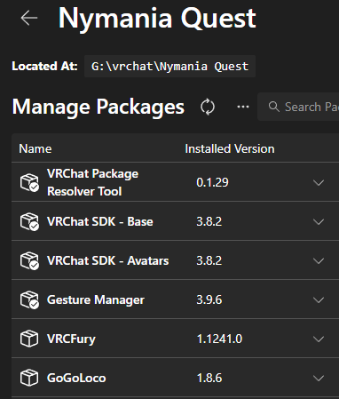 When making the Creator Companion projects make sure to use the correct packages! (You can leave out Gesture Manager if you don't want to test the avatar before upload.)
