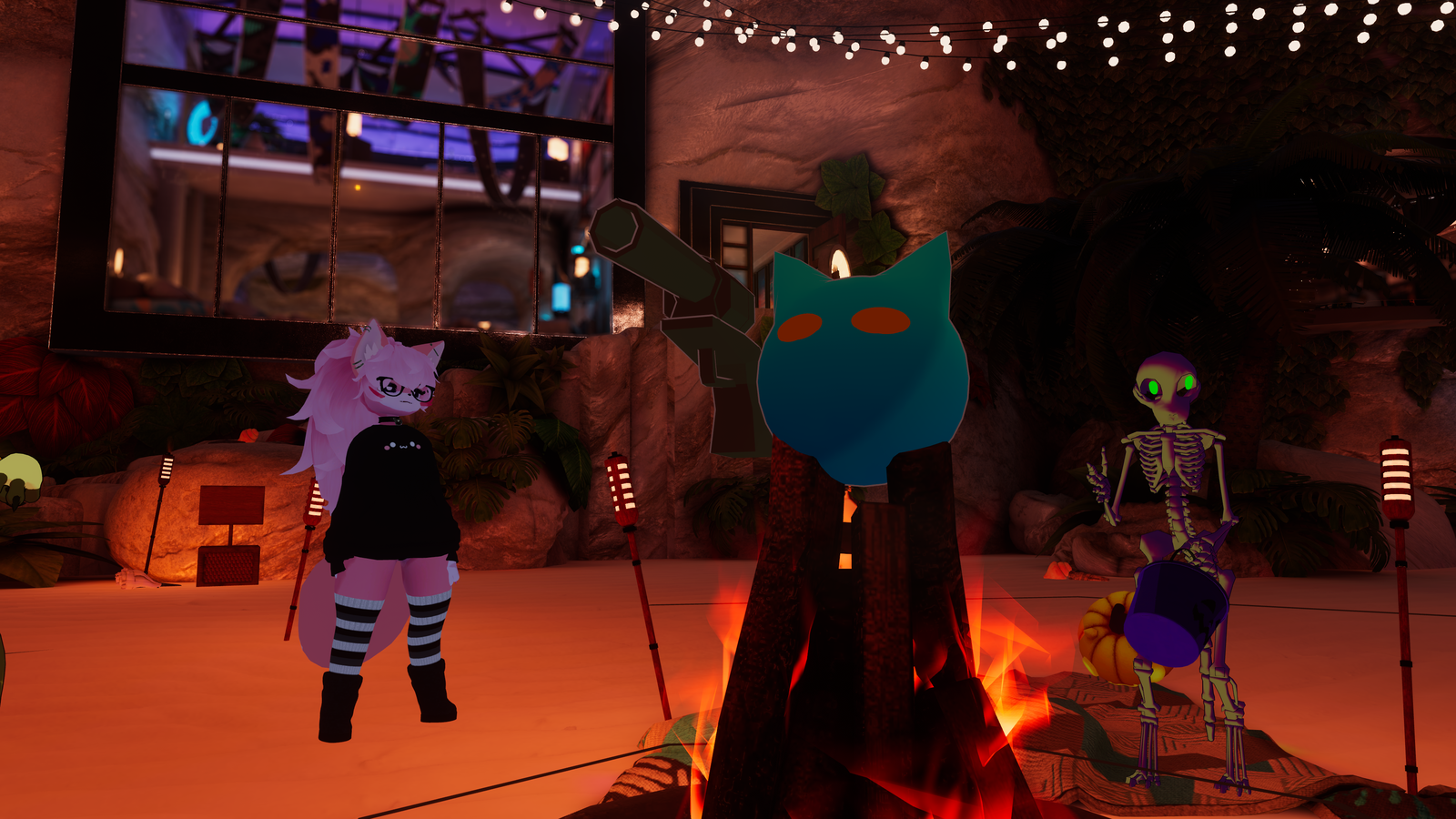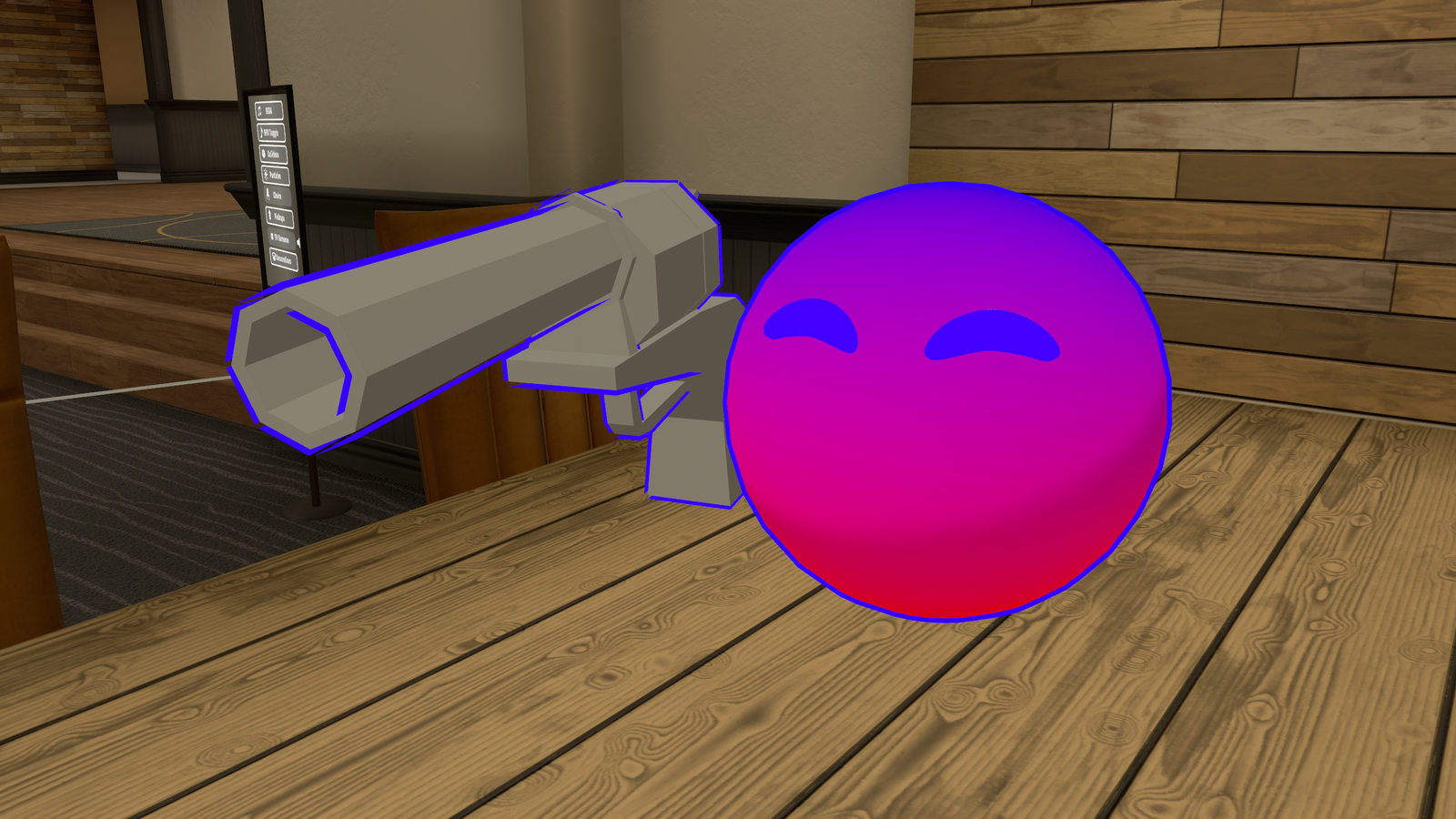Created with a focus on optimization and socialization, this is fully playable and controllable by other players as long as they have interactions enabled with the host! Uses avatar head contacts to point at players, so players must have a head contact.