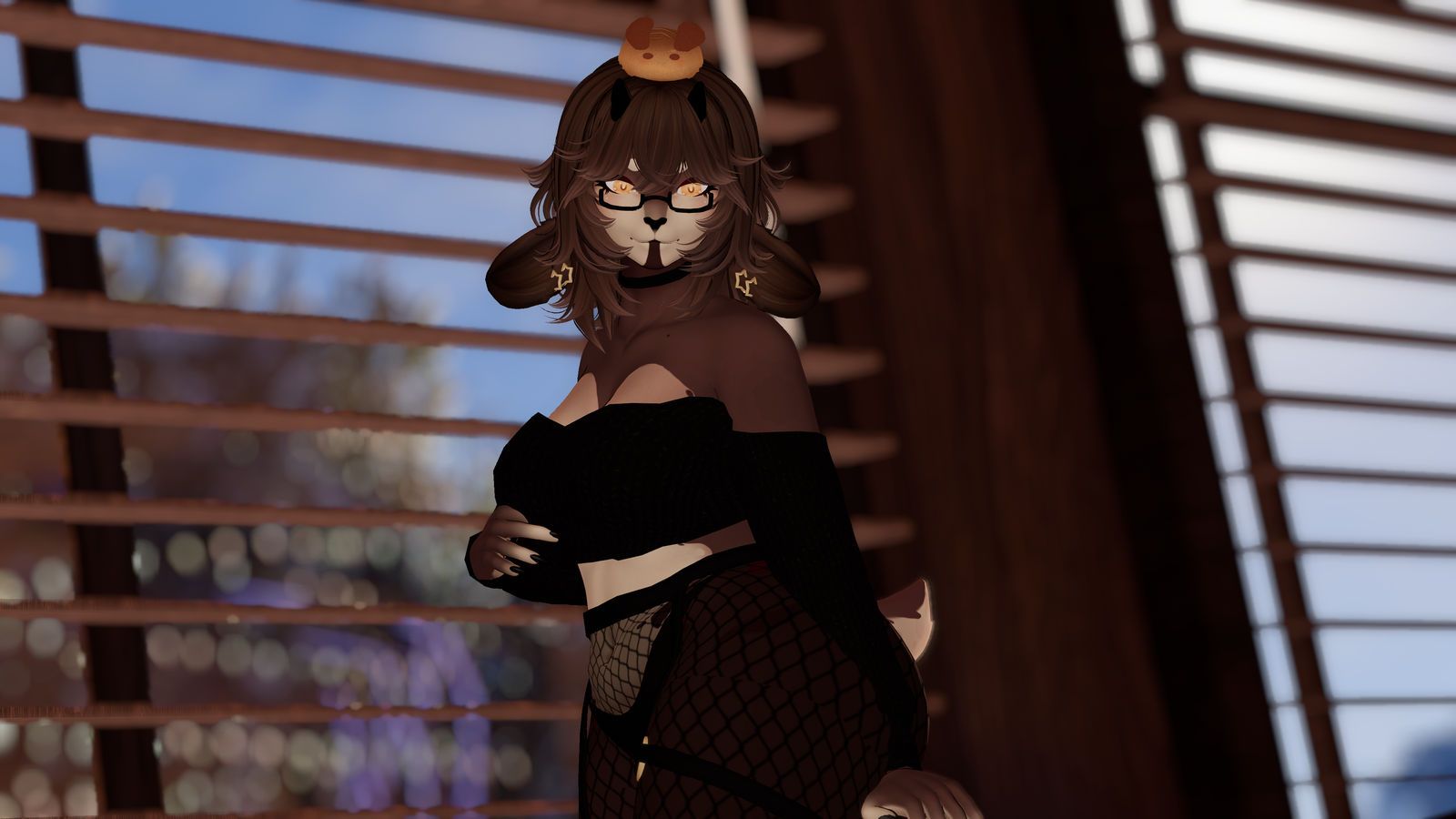 - Body toggles: Eye hue, Eye black, fishnets, body hue, Body emissions (its audio linked), body emm hue, hair mat n hair hue