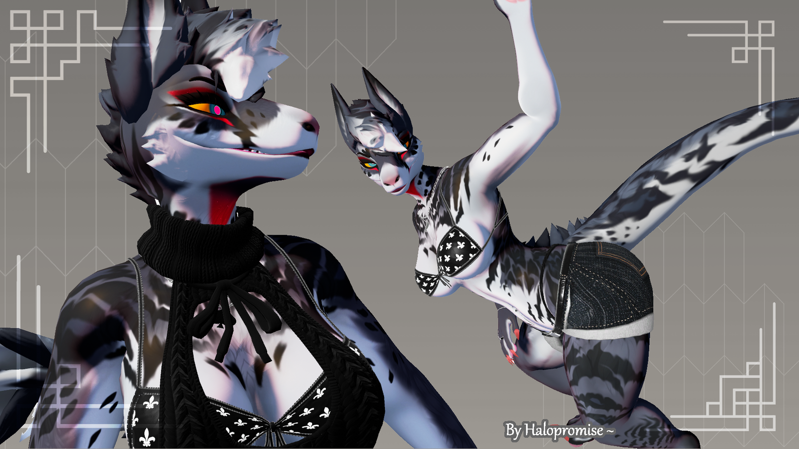 A fluffy arctic-wildcat themed texture for Neochroma's Raptor Lady avatar