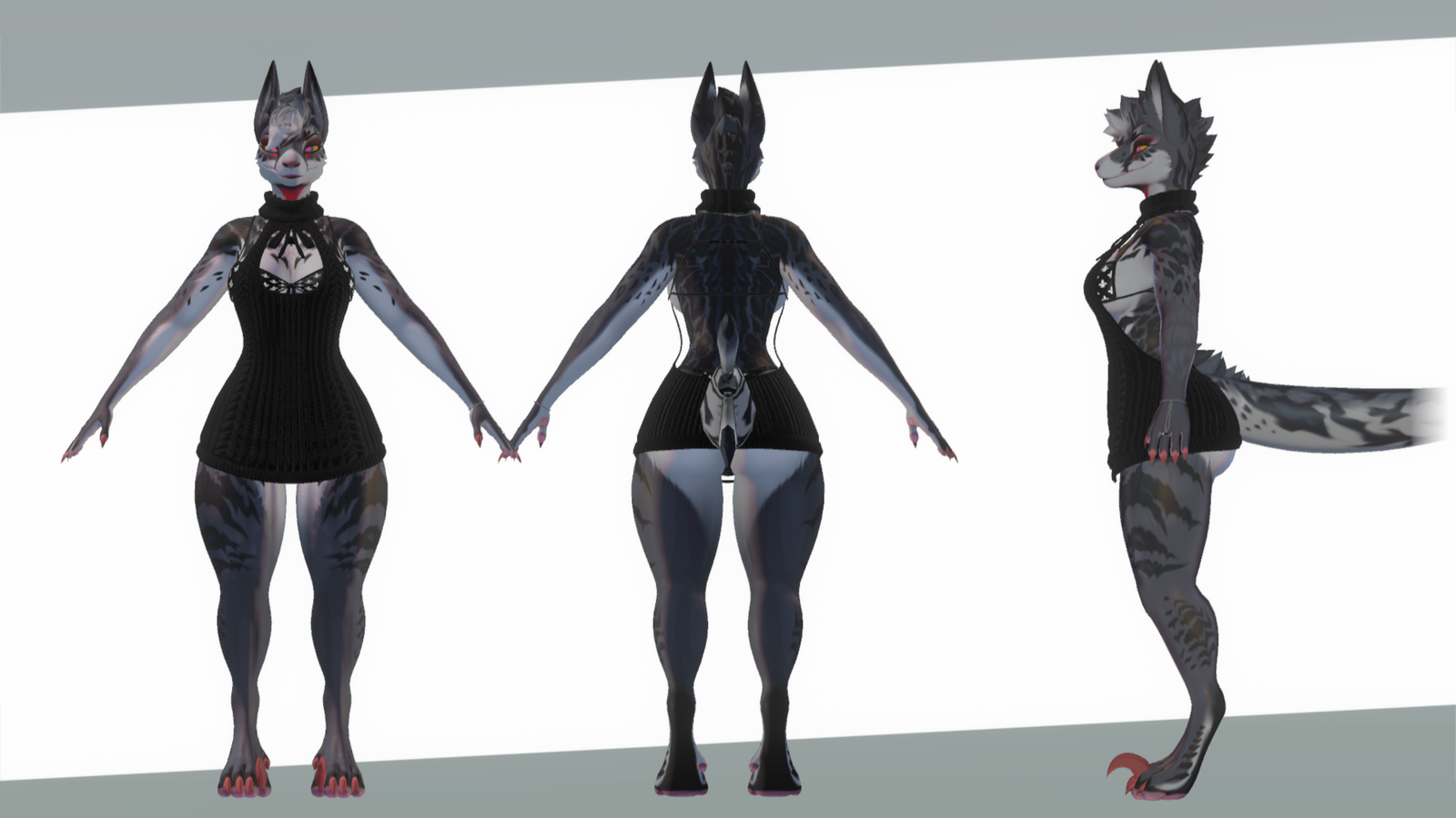 - A textures folder including body, ear, eyes, tail and hair base colors, body and tail metallic, body and tail roughness, body glitter mask, body and tail emission masks