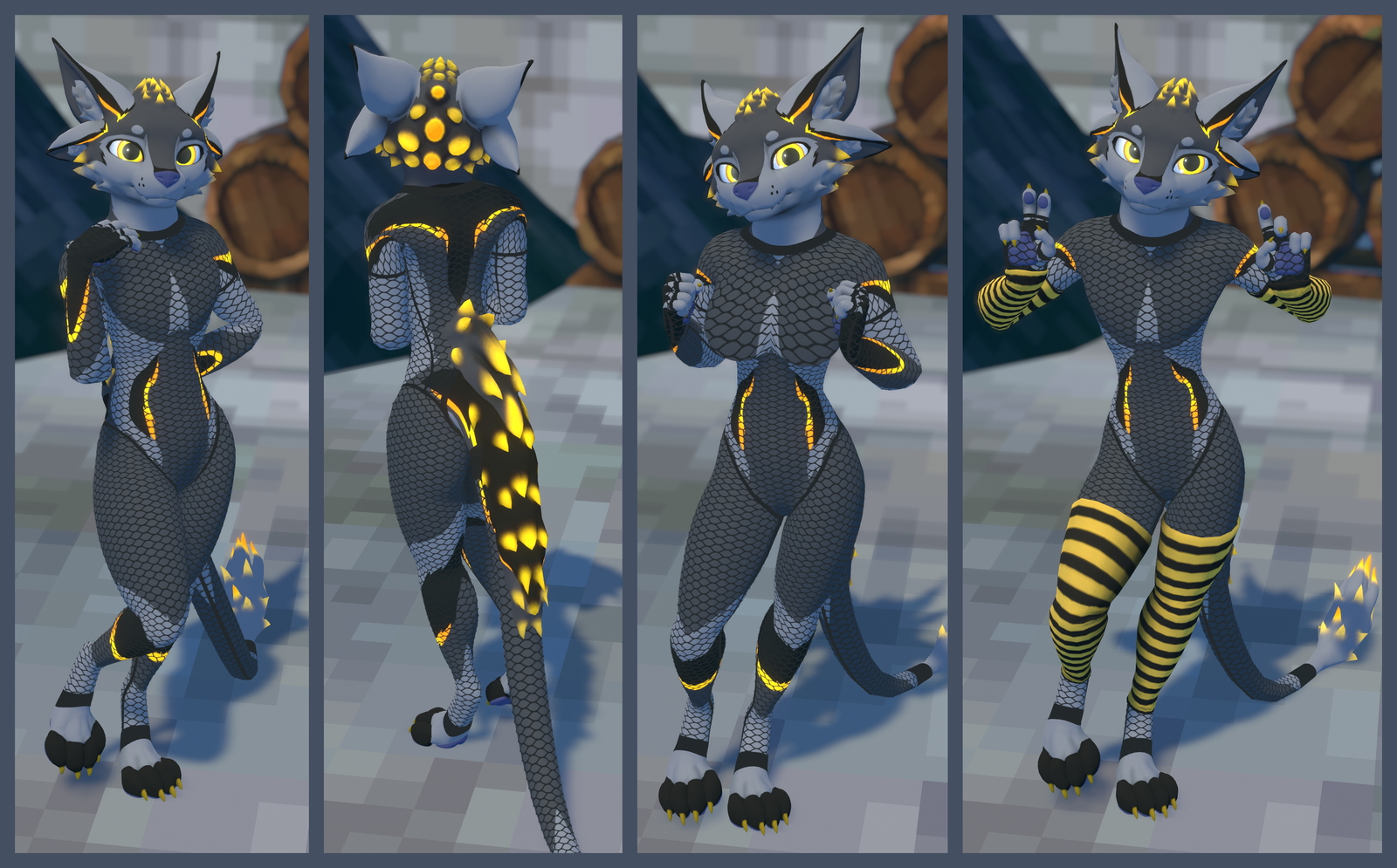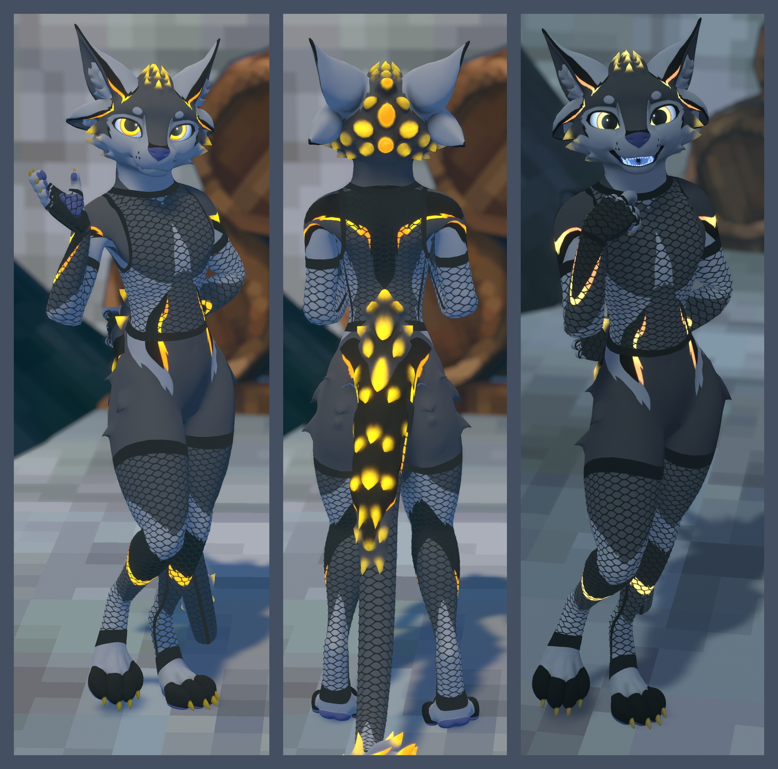 Some fishnets for Abiboi's Deuzear v2.0 VRChat avatar! They fit with all the stock clothes and NSFW additions!