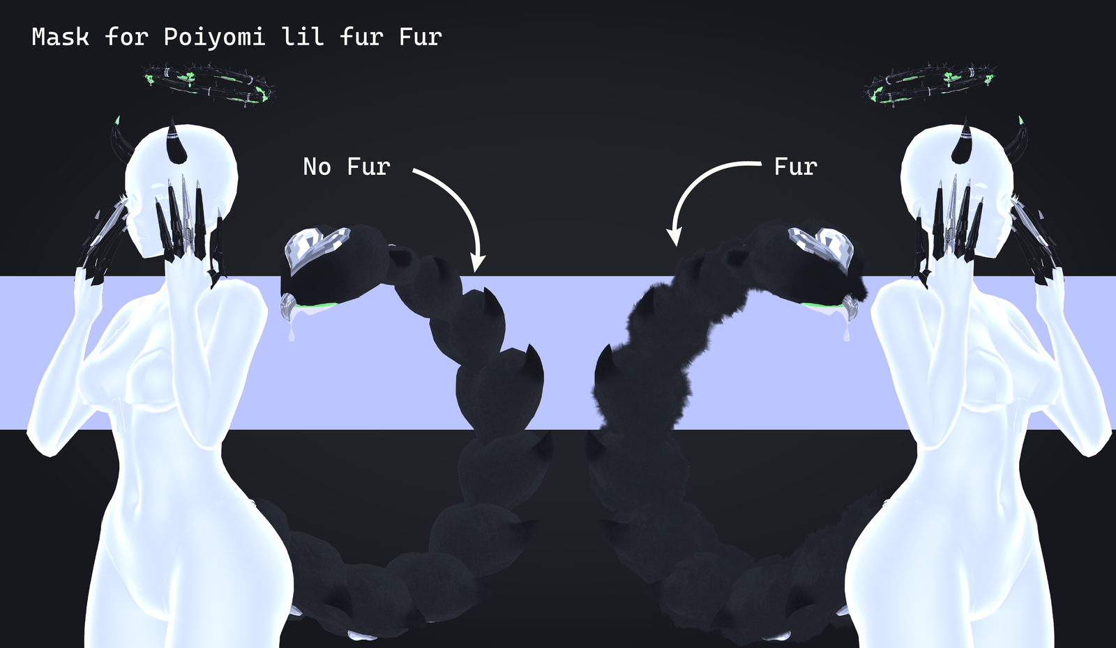 The showcase model is NOT included. The package contains only the item listed in its description (Tail, horns, halo, claws). No additional assets beyond those stated are included.