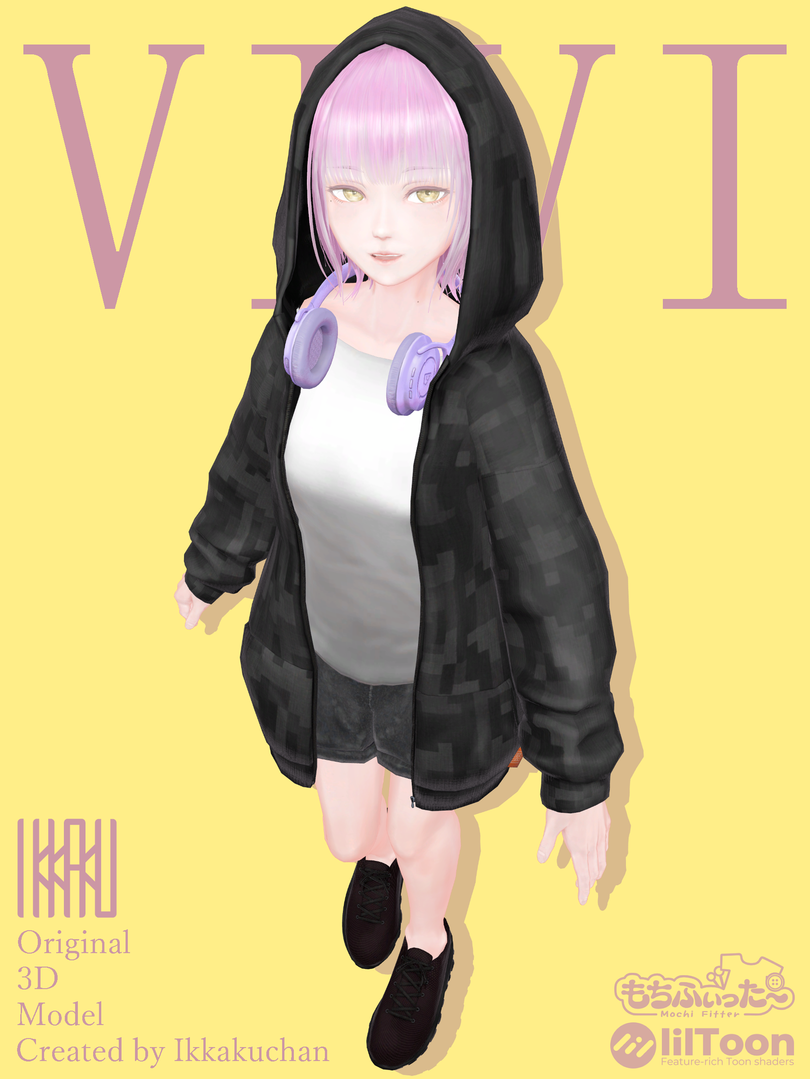 Thank you for visiting my store! This is an original 3D avatar "Vivi", a high-quality character model designed for VRChat. This package also includes a cute companion pet, "Ikkakuchan"!