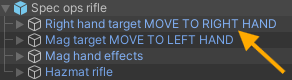 In order to parent the rifle to the hand you will need to unpack the prefab and move the targets to the corresponding bones manually.
