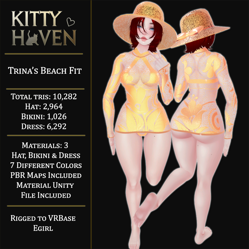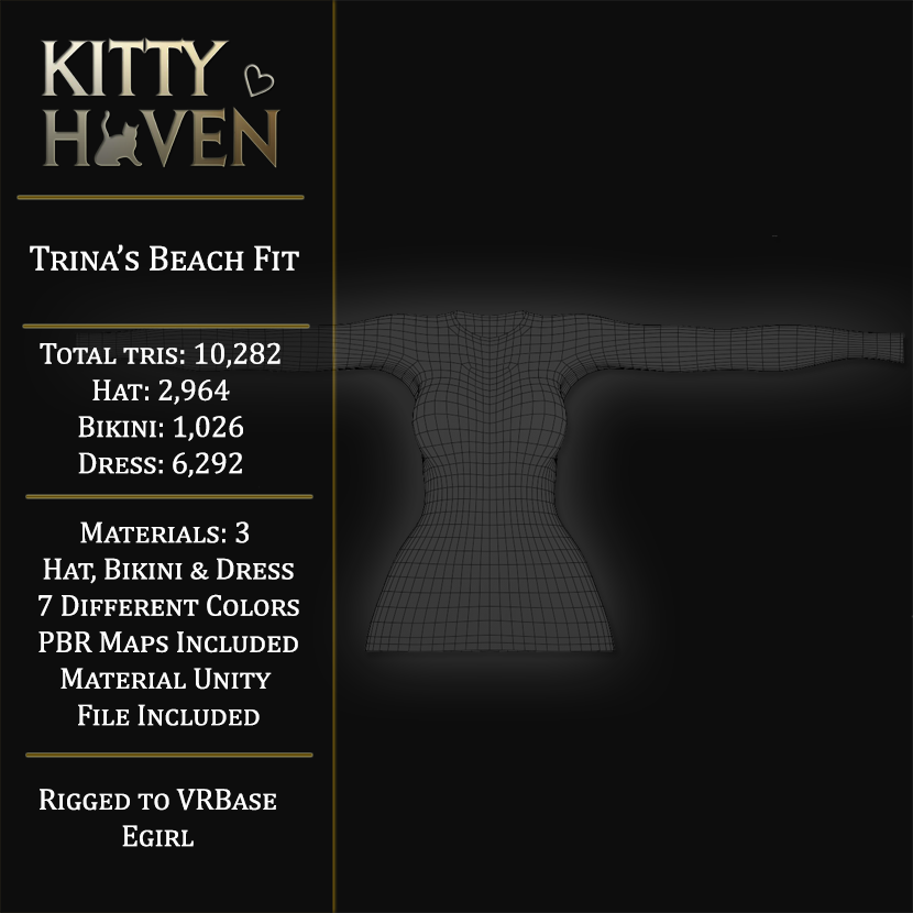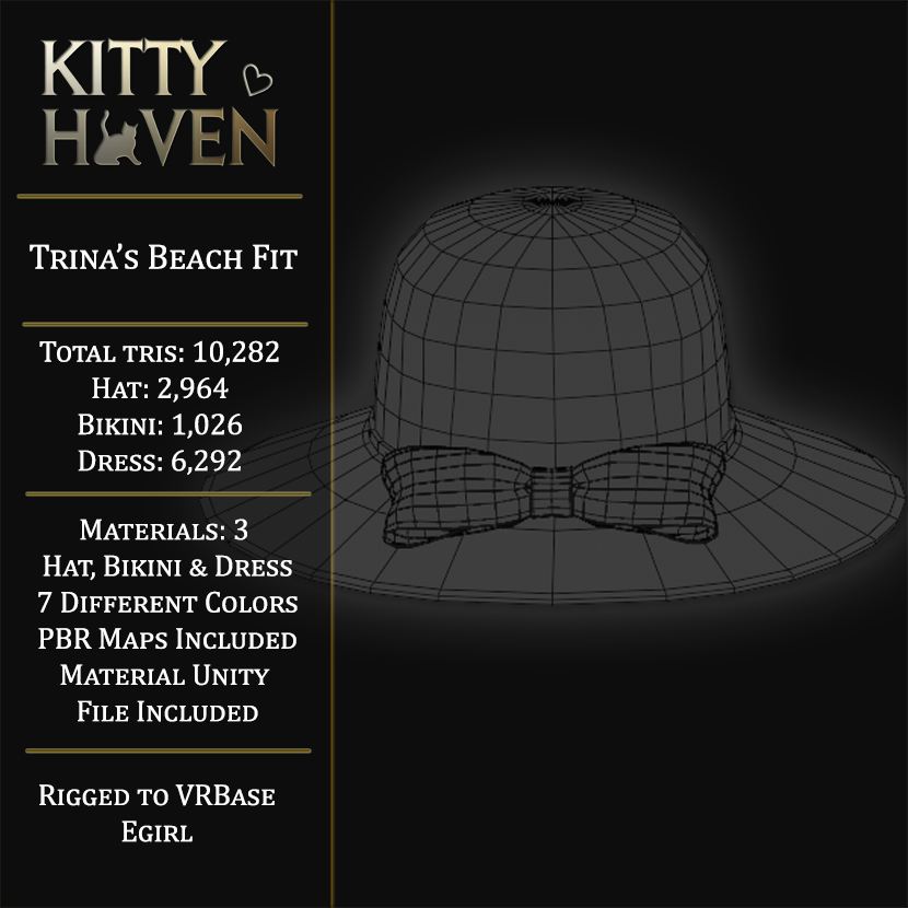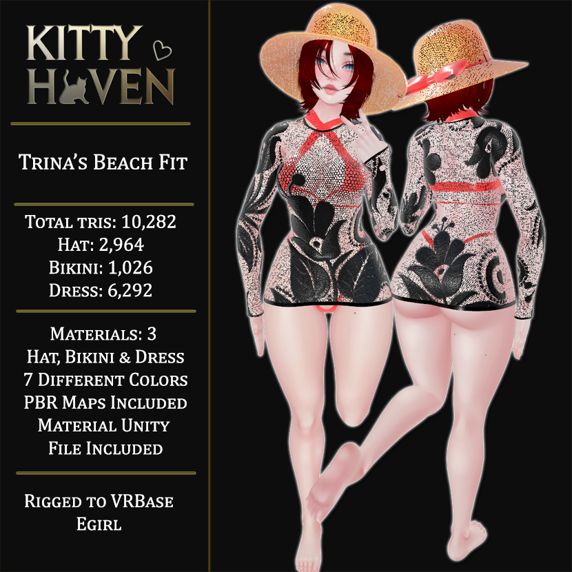 3 materials: Dress, Hat, Bikini