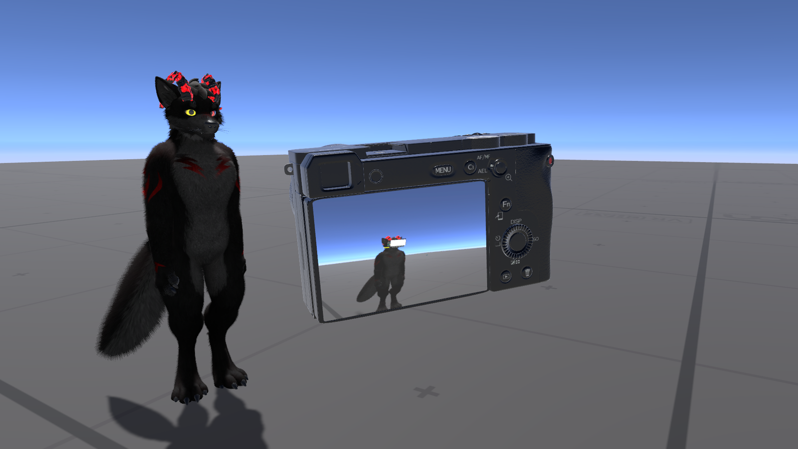Place a render texture from any world camera into the shader. When you enter a cube with this shader material applied, your VRChat camera automatically takes over the feed and displays what you see on the cube's surface. Step outside the cube and the shader deactivates—perfect for portable camera displays or streaming setups.