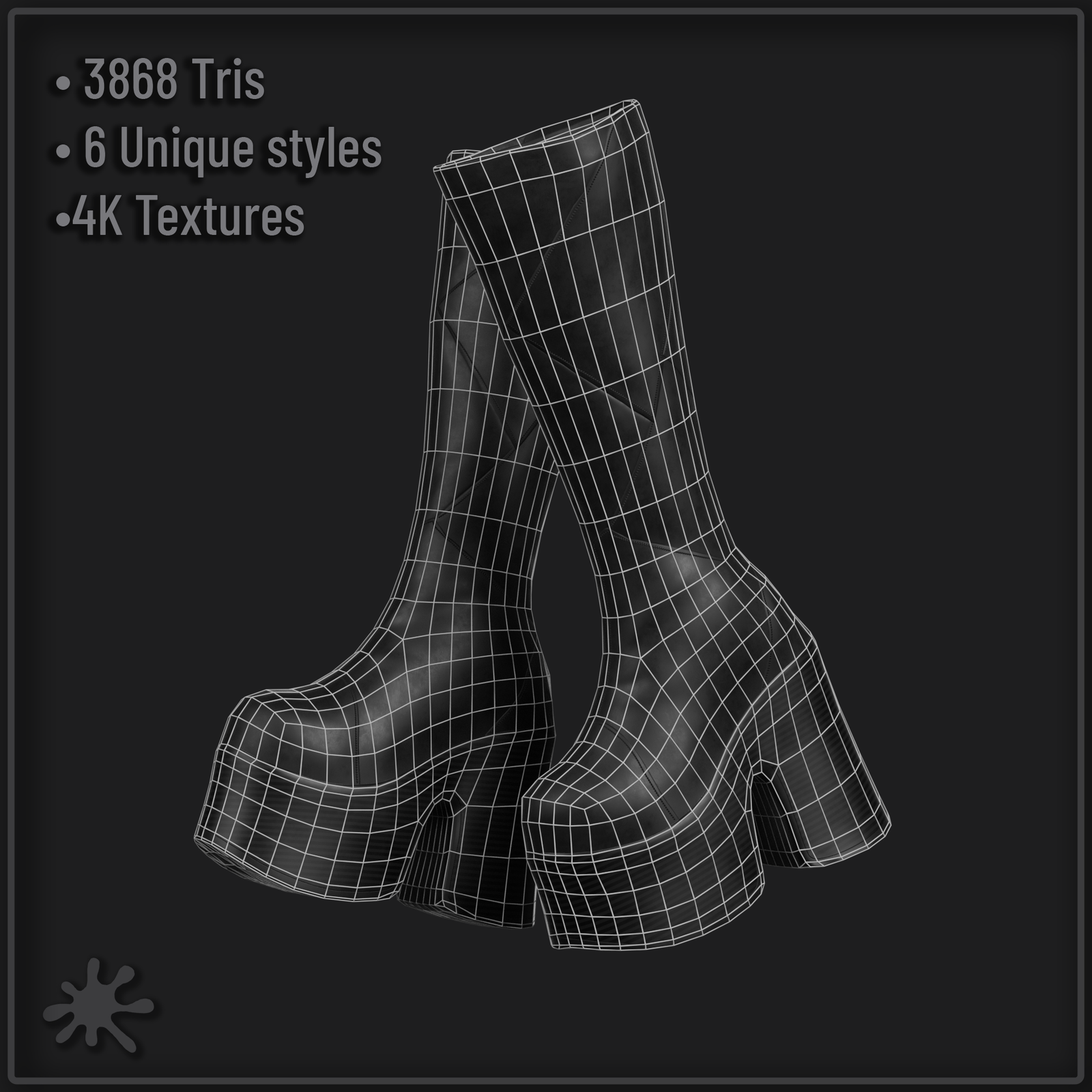 Monia Platforms set is game ready, uv mapped, clean topology, textured and rigged to zinpia e-girl base.