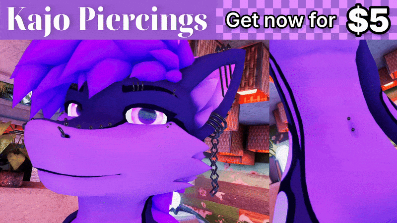 All of the piercings can be hidden in the Unity editor if some are not wanted! The piercings are synced with face tracking and other gestures and movements.