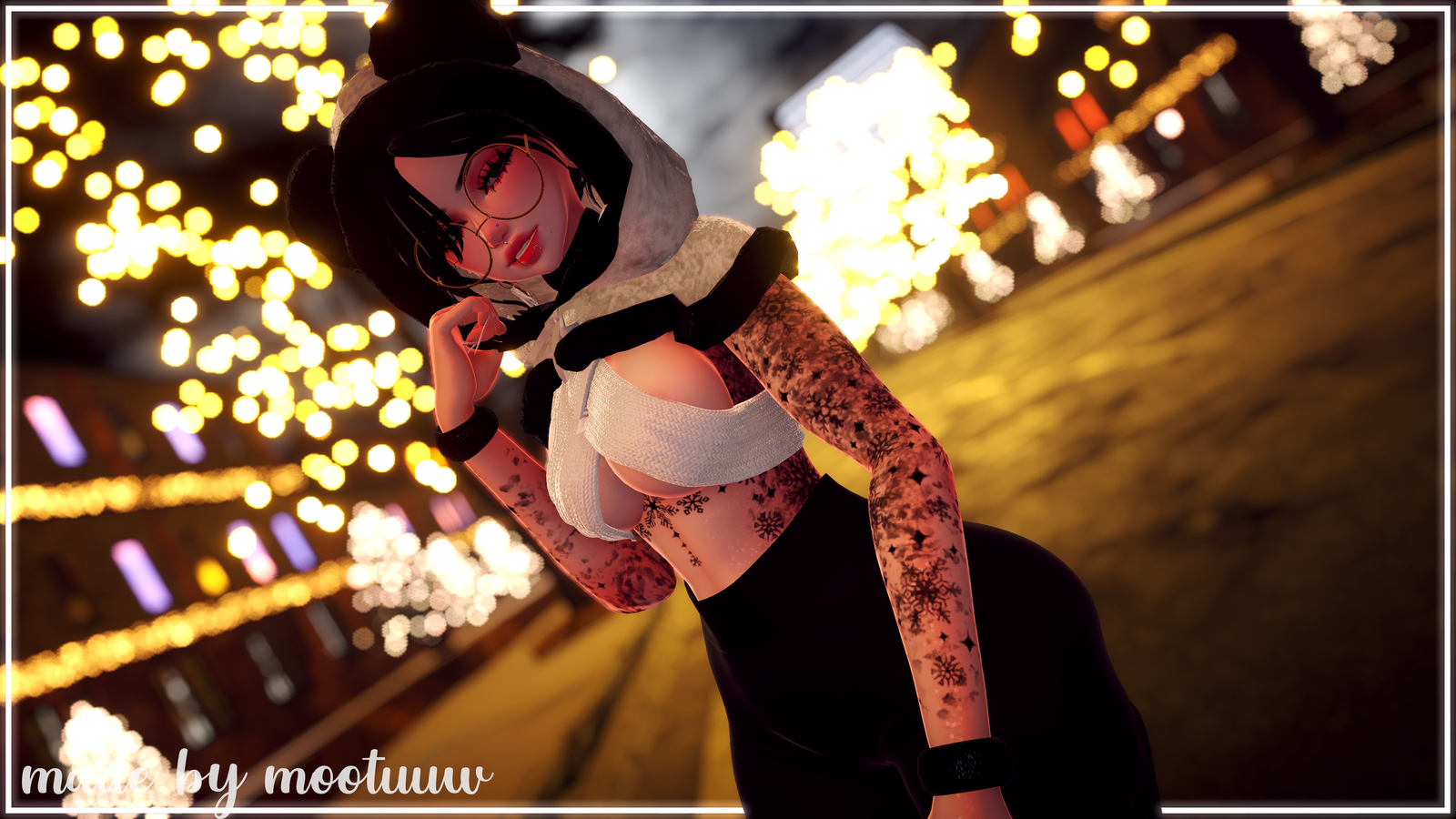 Body Panda Base NOT FOR REUSE pandaabear │Head NOT FOR REUSE sivka & adjerry91│Ears beanie│Lashes NOT FOR REUSE sivka│Hair nessy │Head Texture yingyang & miing & jvliette│ Eye Texture fair│Nails yaoomi│Tattoo Texture maddiiee│Deer Ears/Antlers whituu│Beanie hayweeesstash│Muffs aika│Headband nessy│Scarf/Warmers yaoomi│Jewlery rebeeca &beanie& pinkraccoon│Glasses aika│Leggings/Skirt beanie│Santa Hat nessy│Sweater Set/Bikini aika │Low Boots/Socks saikura│Thigh High Boots wetcat│Boots aika│ Socks Long honeylab │Heart Sweater lokisvanity│Puffer lunarreef│Bear Hood zeffyrsfantasaia│Deer Plush│Baby Dress honeylabs│ Snow Effects PixelTopia│Matcaps Svika│Av3 Emulator│Follower Aple Juu│