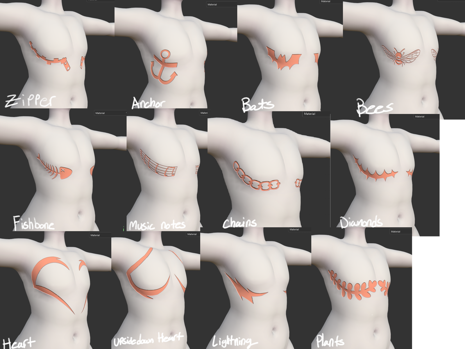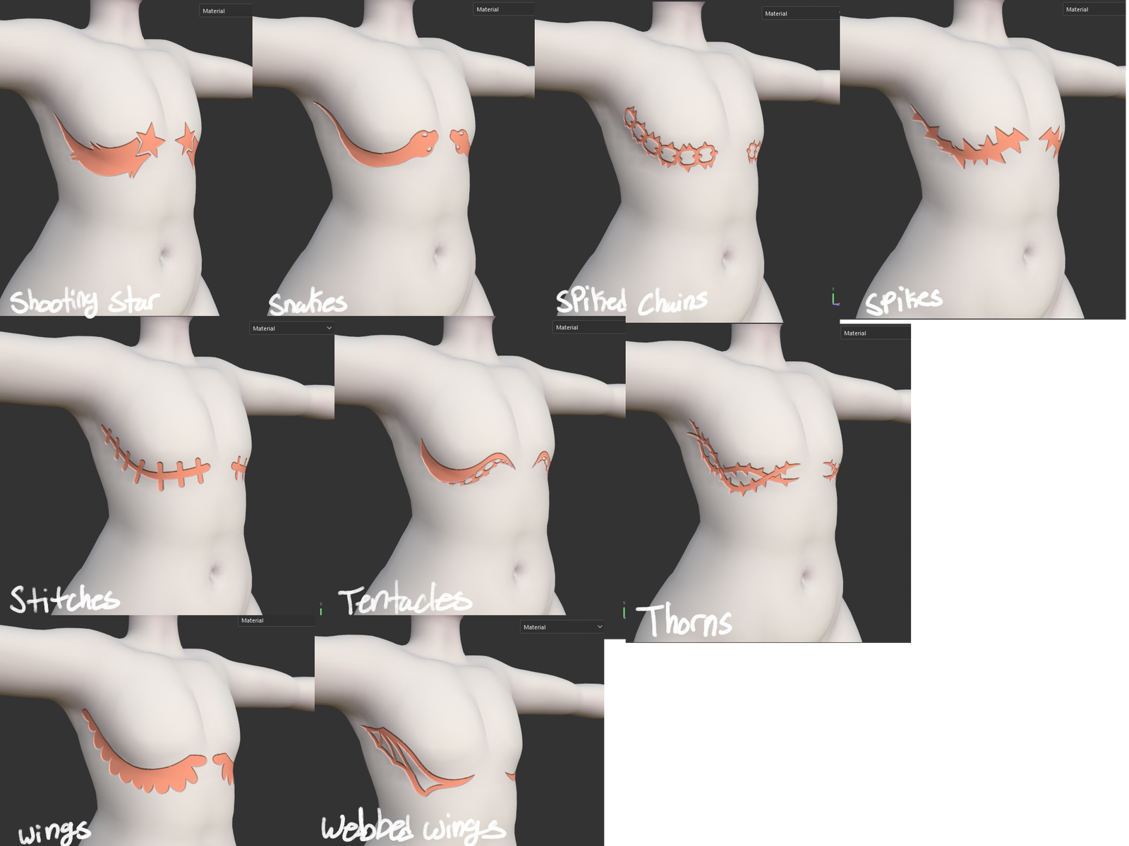 Wanna get a little fantastical with your top scars? Look no further! With 20 different designs, this pack offers a variety of options for top scar designs! From bees to bat wings, catch everyone's attention with these wild designs!