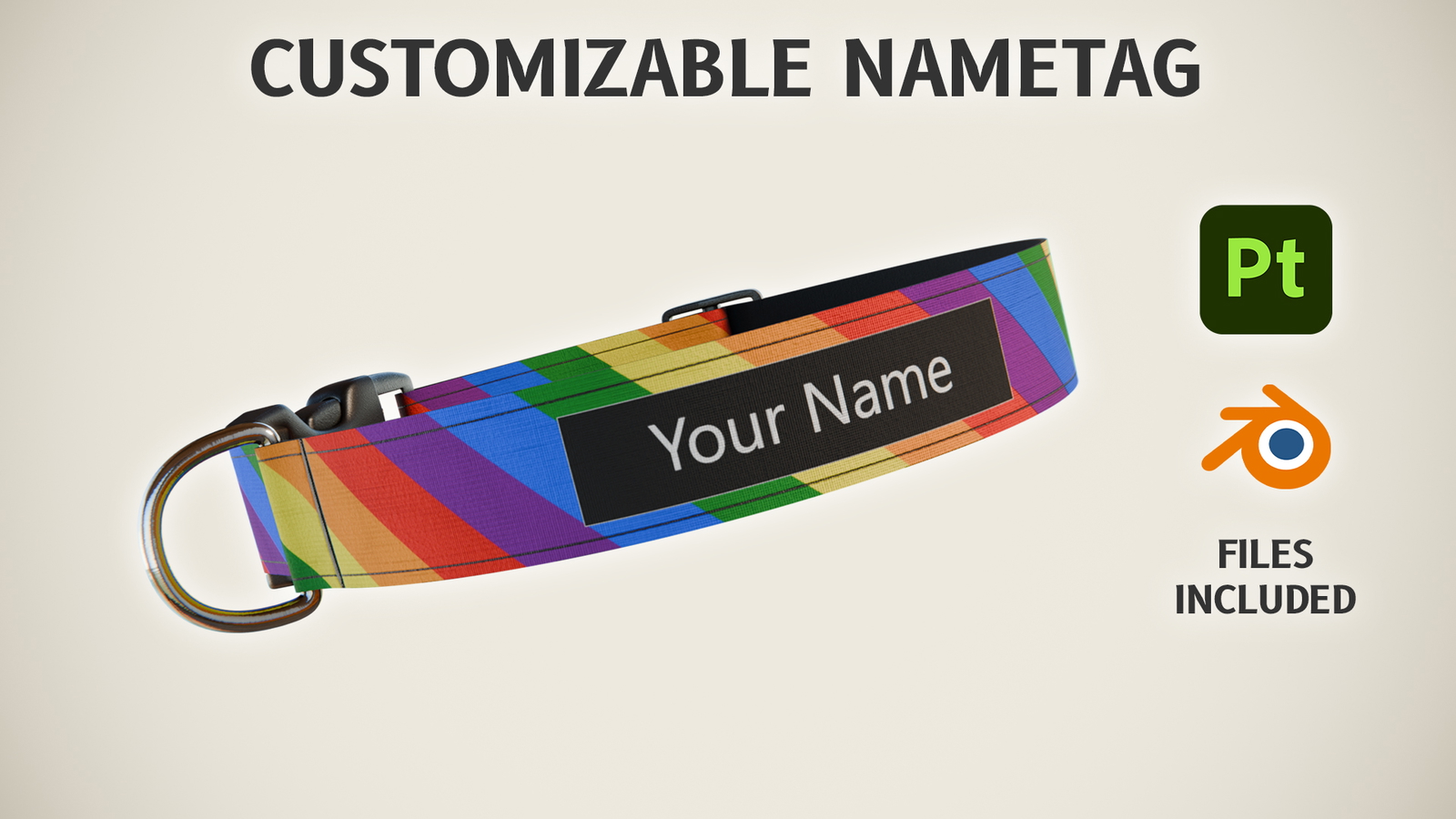 - Customizable textures with Substance Painter (you can change the text on the tag and the logo on the buckle).