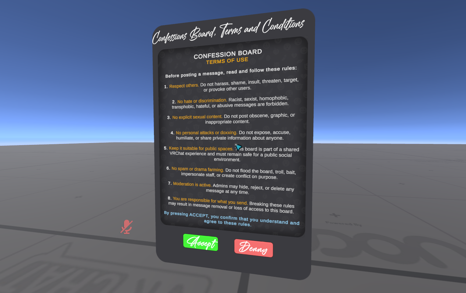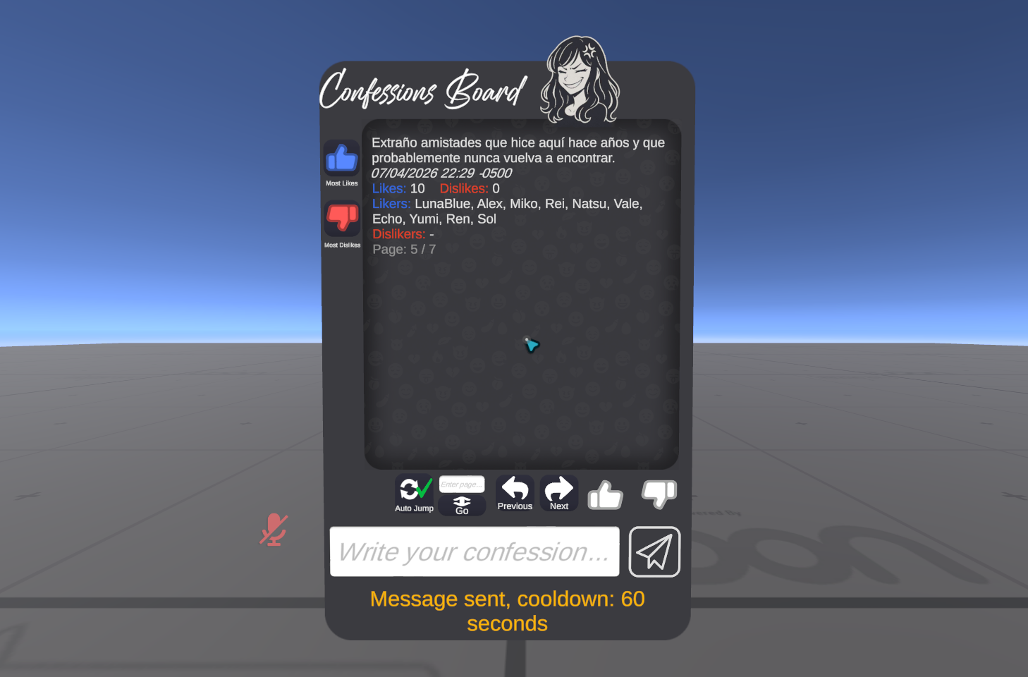 A synced confession and community message board for VRChat worlds ๐๐ซ