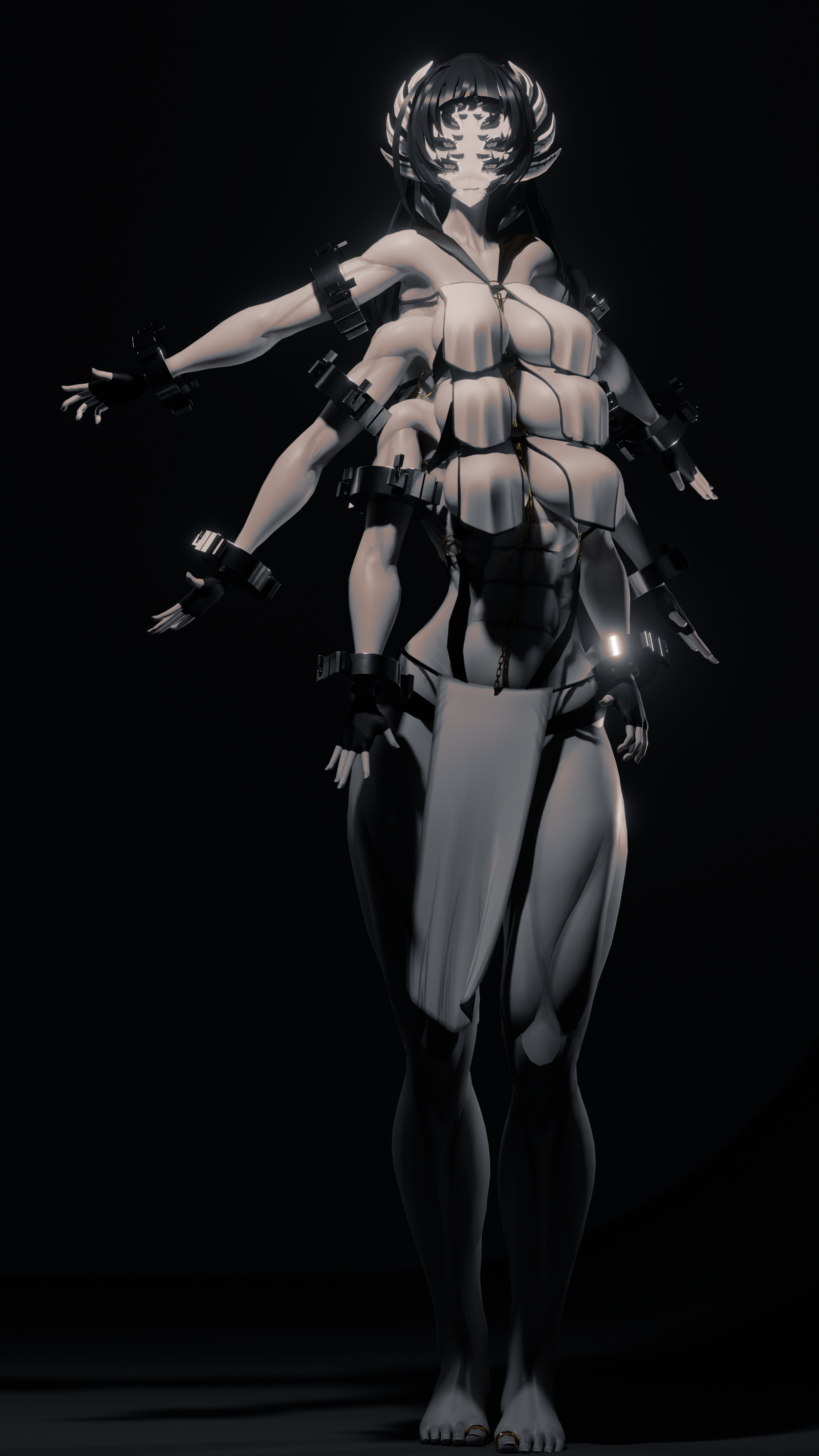 Triangle count of the optimized body (Face, Body, Hair, Tongue, Hair Shadow) is approximately 29k tris.