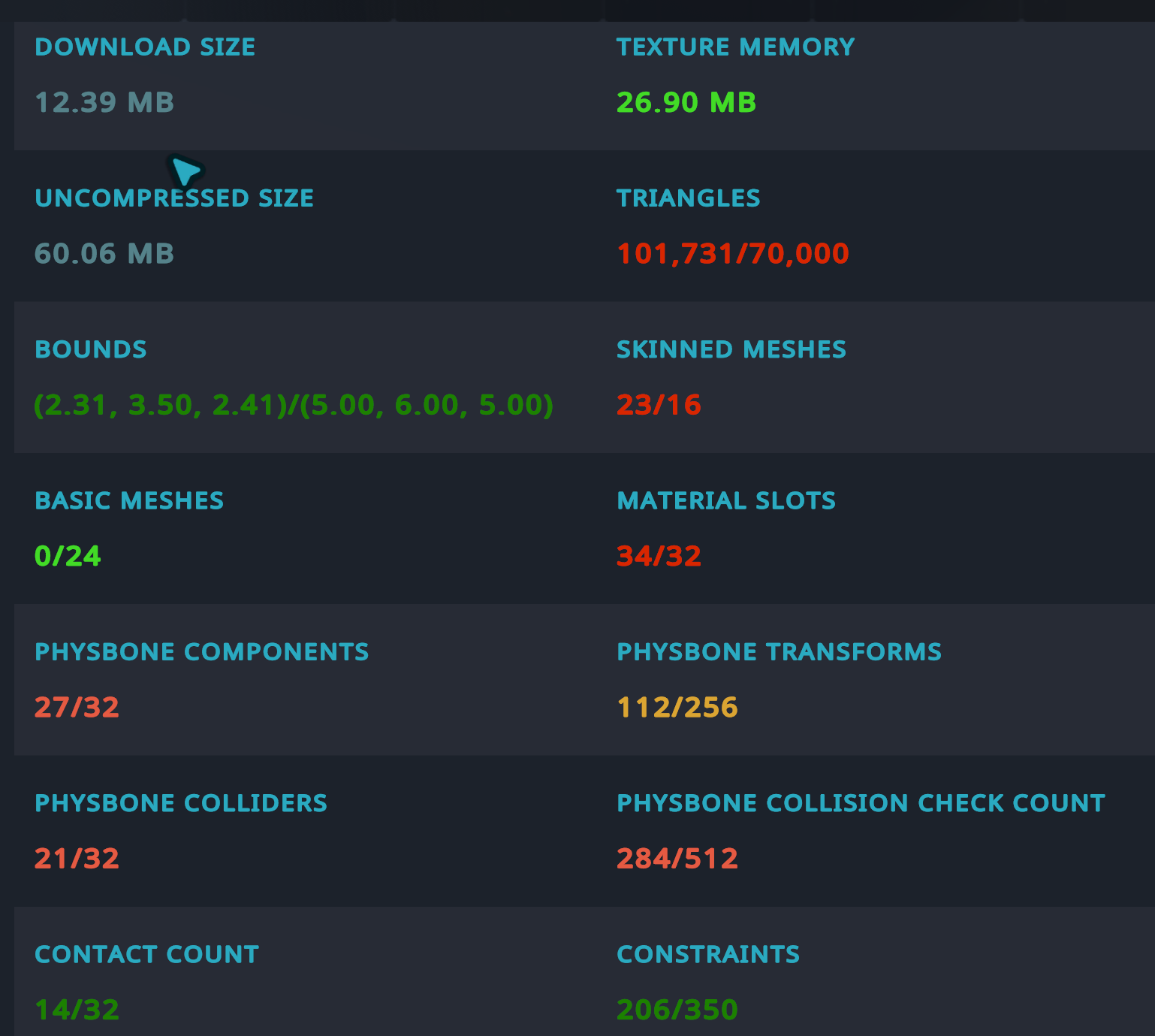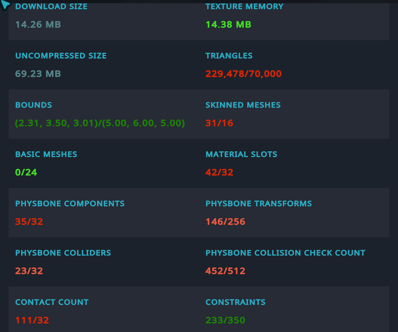 The preconfigured avatar setups are all Very Poor, windows and quest. You'll have to manually strip down features to make them more optimized for your own personal use. On PC, the lower bounds on performance rank is Medium due to bone count. On Quest, Very Poor is the highest performance rank.
