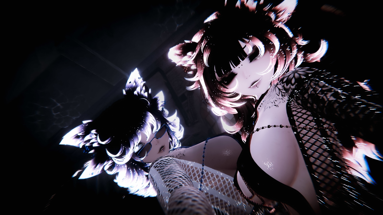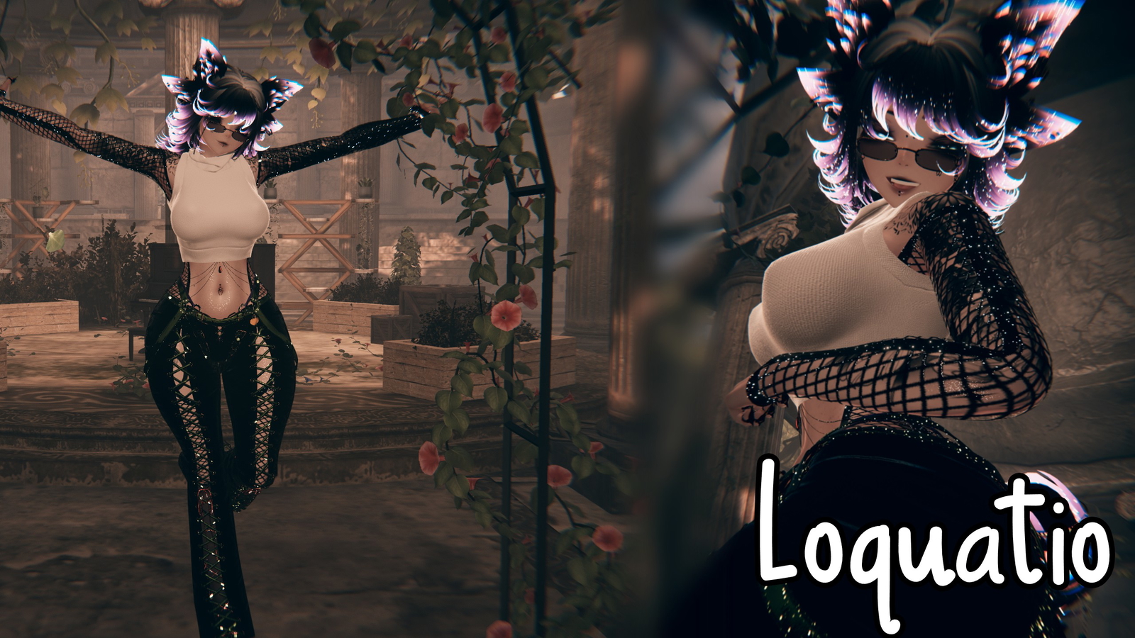 Head - Starlynn,(Heavy edit by me, do not reuse!) Long Hair - Minki, Tease set - Nessy, Divine Bodysuit - Winxies Boutique, Kitsune Ears - Xerozu, Shorts - Strelizias, Tail - King Nex, Lace up pants - Vinuzhka, Short Hair - Saikura, Glasses - Saikura, Rings - Catakitty, Pasties - Neikox, Moon Bodychain - Aantara, Tattoos - Linxx, Crop Top - Weeby, Belly Ring - Electric Cherry, Heels - Nauuki, Fans - Bee, Lace Bra - Xero 3D, Top Chains - Nauuki, Haptic High Five - thatfatkidsmom, Limb Scaling - Nanochip, Icons - Jinxed