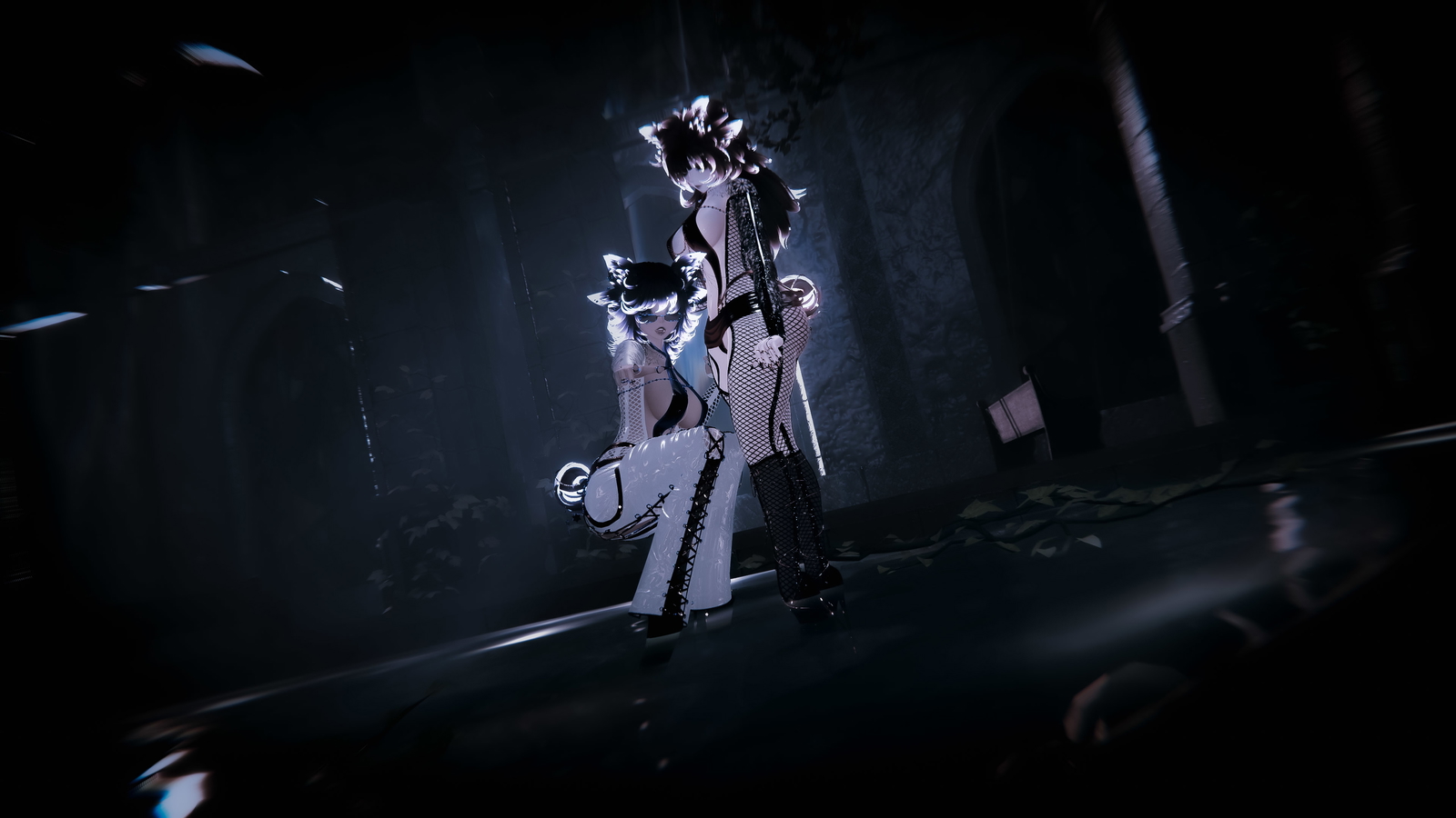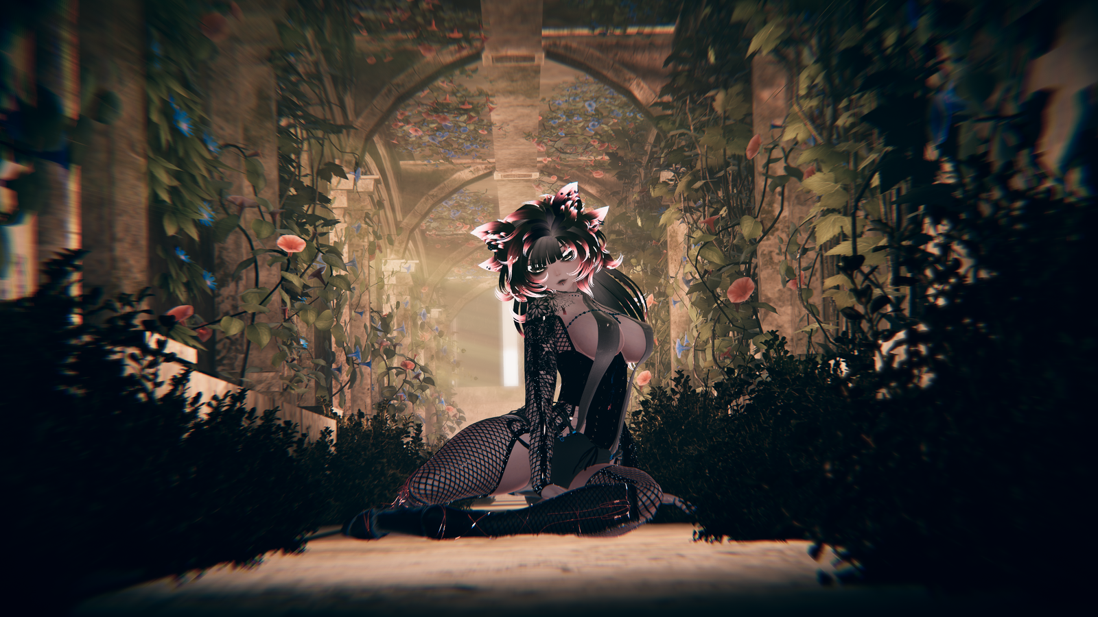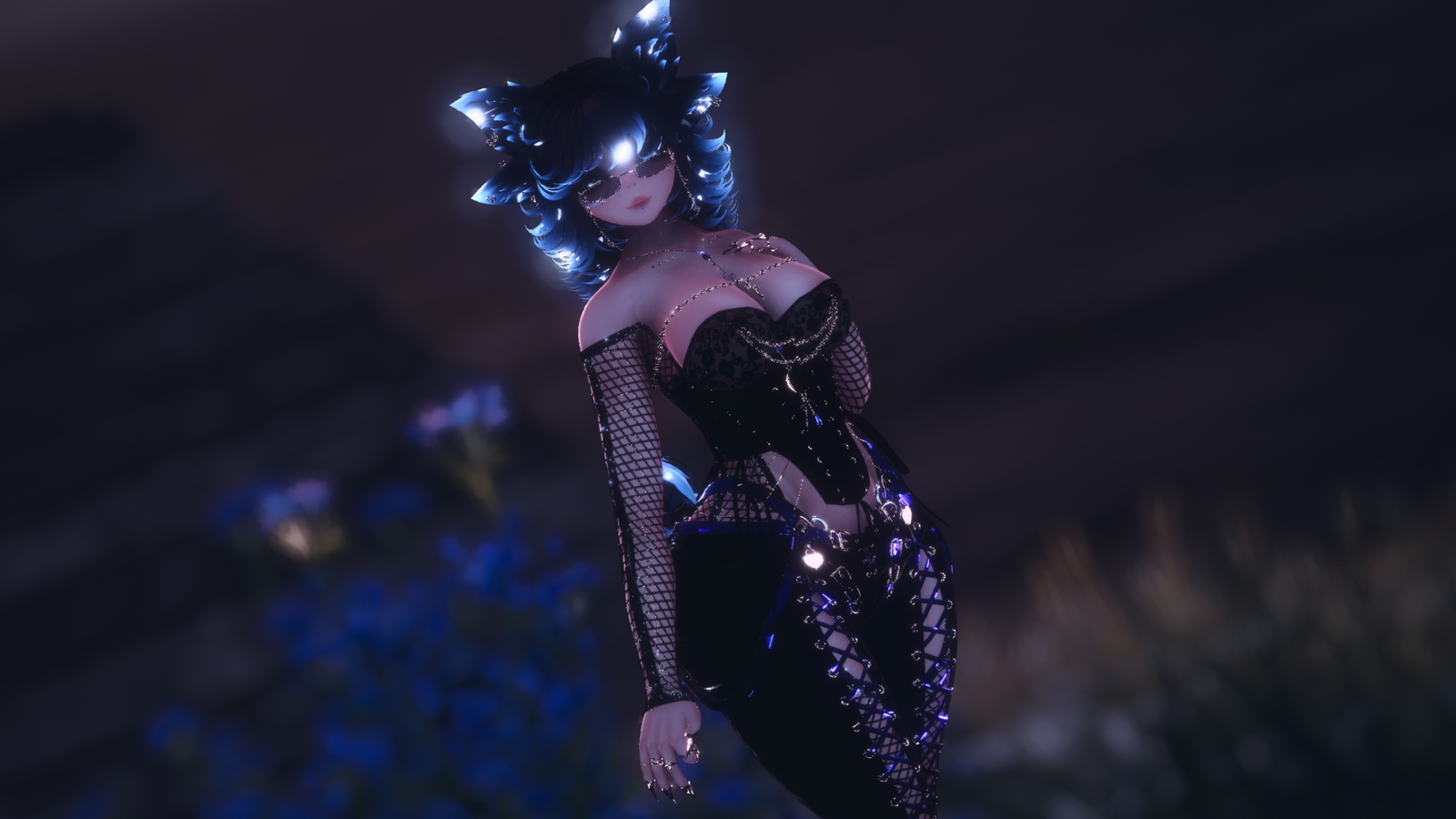 Base version - Bodysuit Top, Bodysuit panties, Chains, rings, Corset, Glasses, Ears, Pants, Shorts, Skirt, Pasties, Bodychain, 2 hair options, Tail, Fishnet suit, Fans
