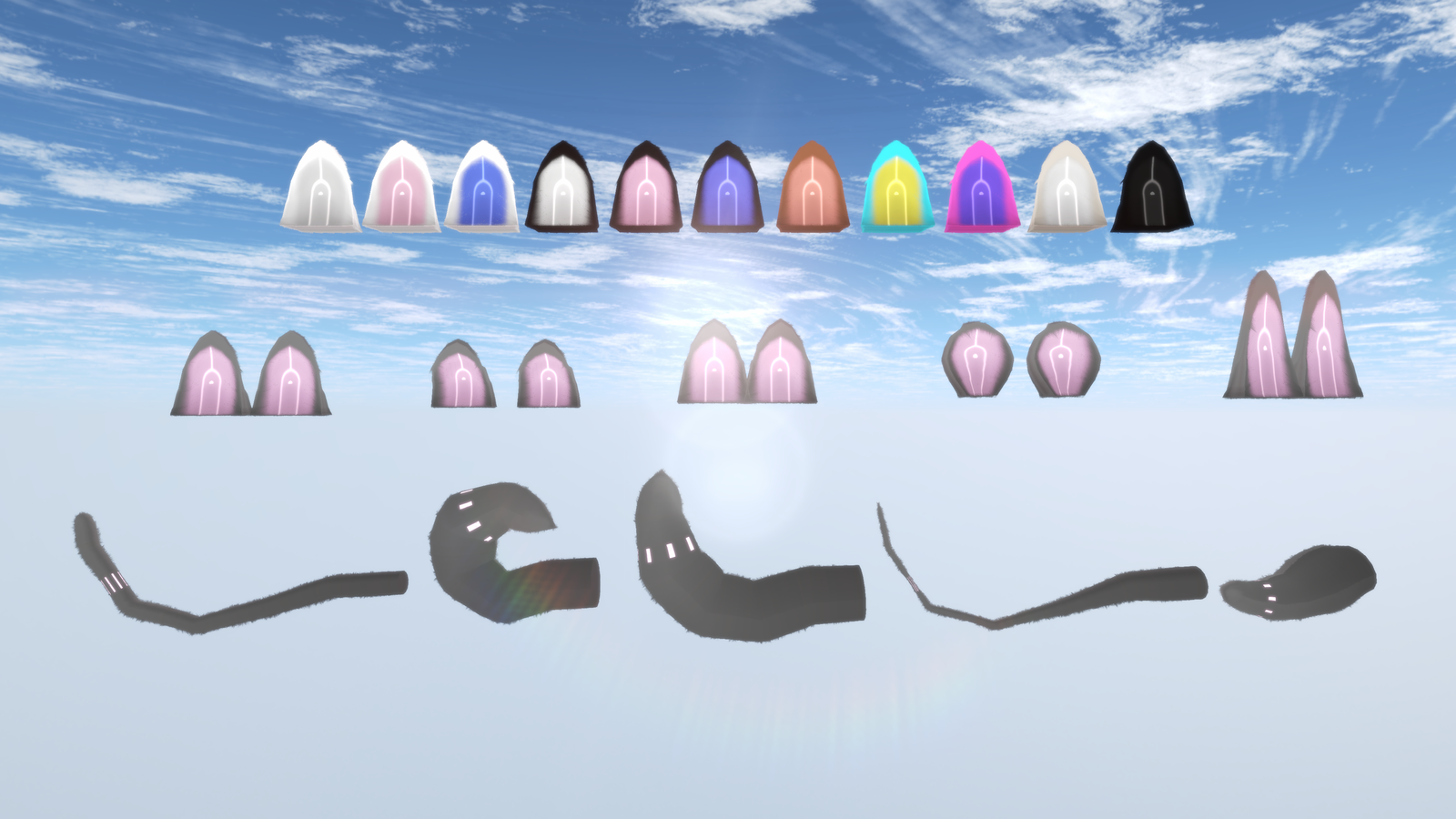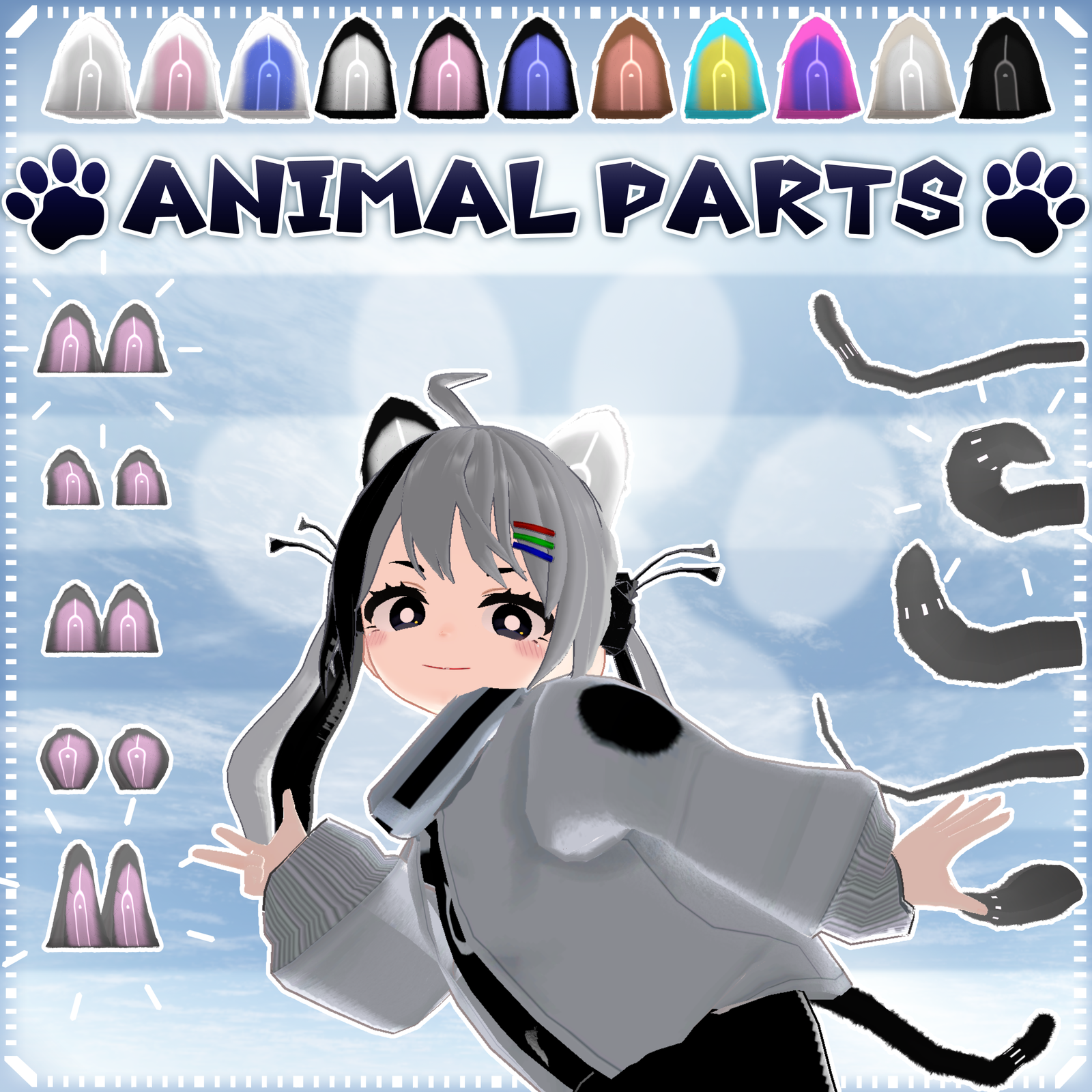 "AnimalParts" is a set of animal ear and tail accessories designed for VRChat. The parts sway with your movement and are fully interactive, allowing them to be touched or grabbed. They are also compatible with Modular Avatar for a quick and easy setup.