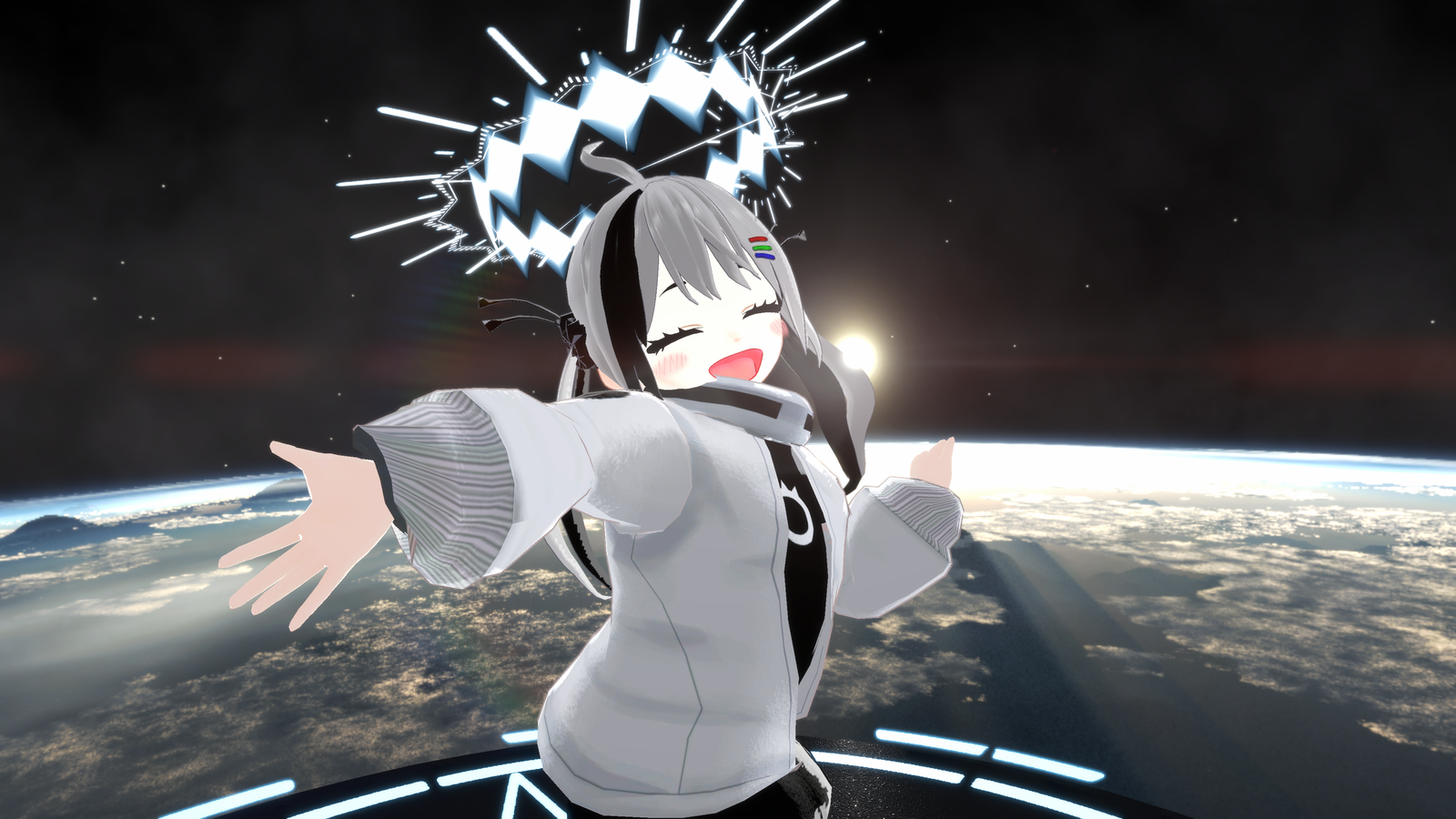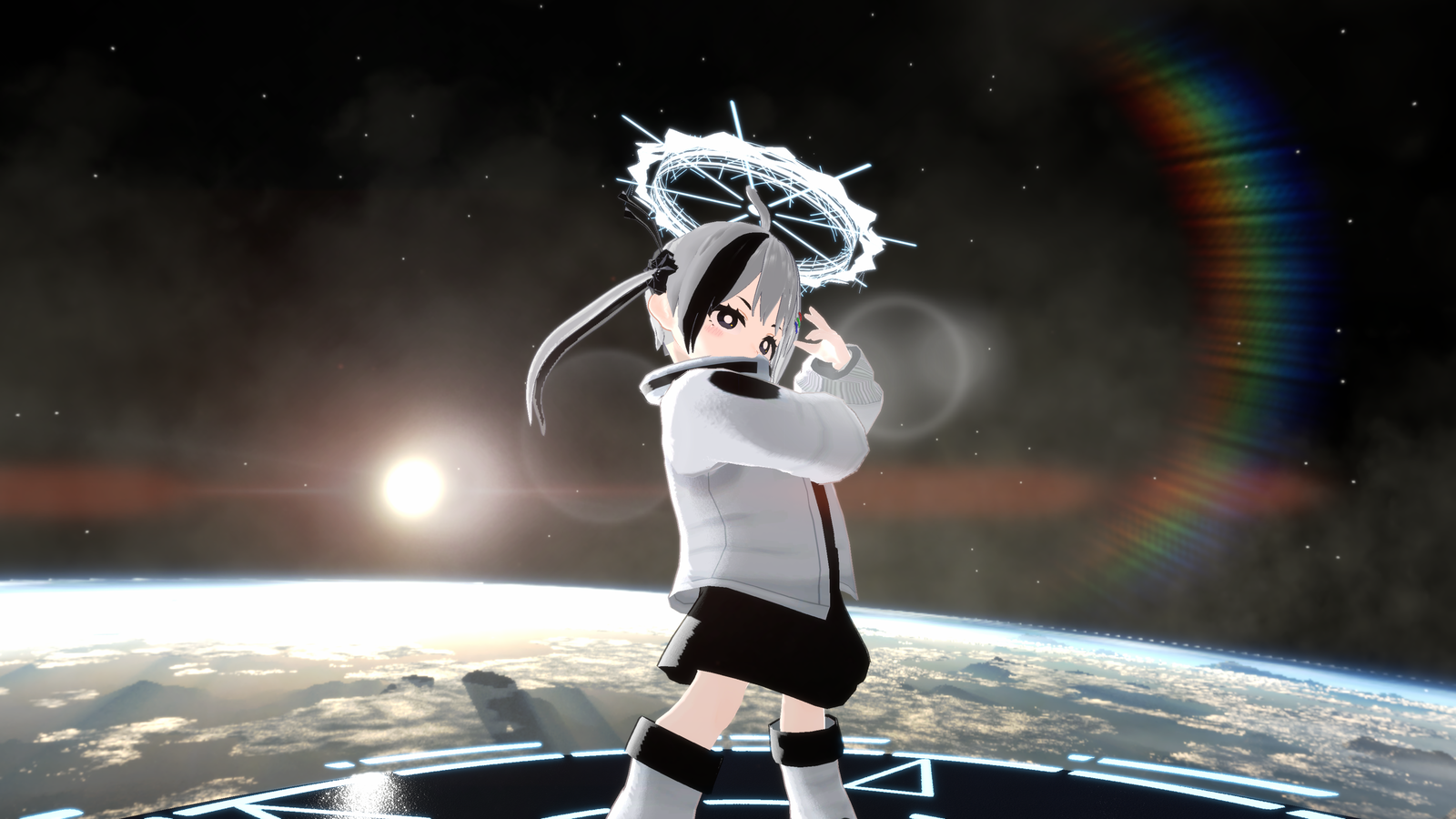 "CyberHalo" is a halo accessory designed for VRChat. Consisting of three to four parts, each rotates with its own motion, creating a slow and beautiful radiance. It is compatible with Modular Avatar for easy attachment.