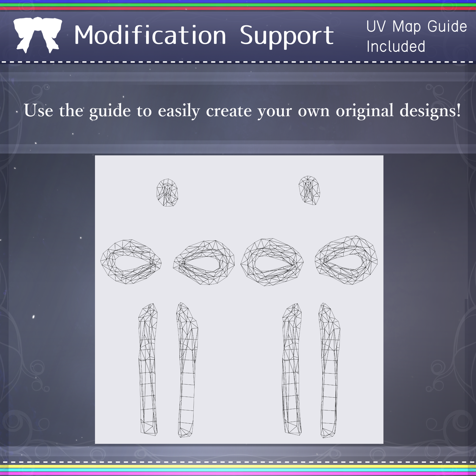 - Custom Textures: UV guidelines for each ribbon are available in CommonData → UV Guide. Use these as a reference when creating your own textures in image editing software (like Photoshop or Clip Studio).