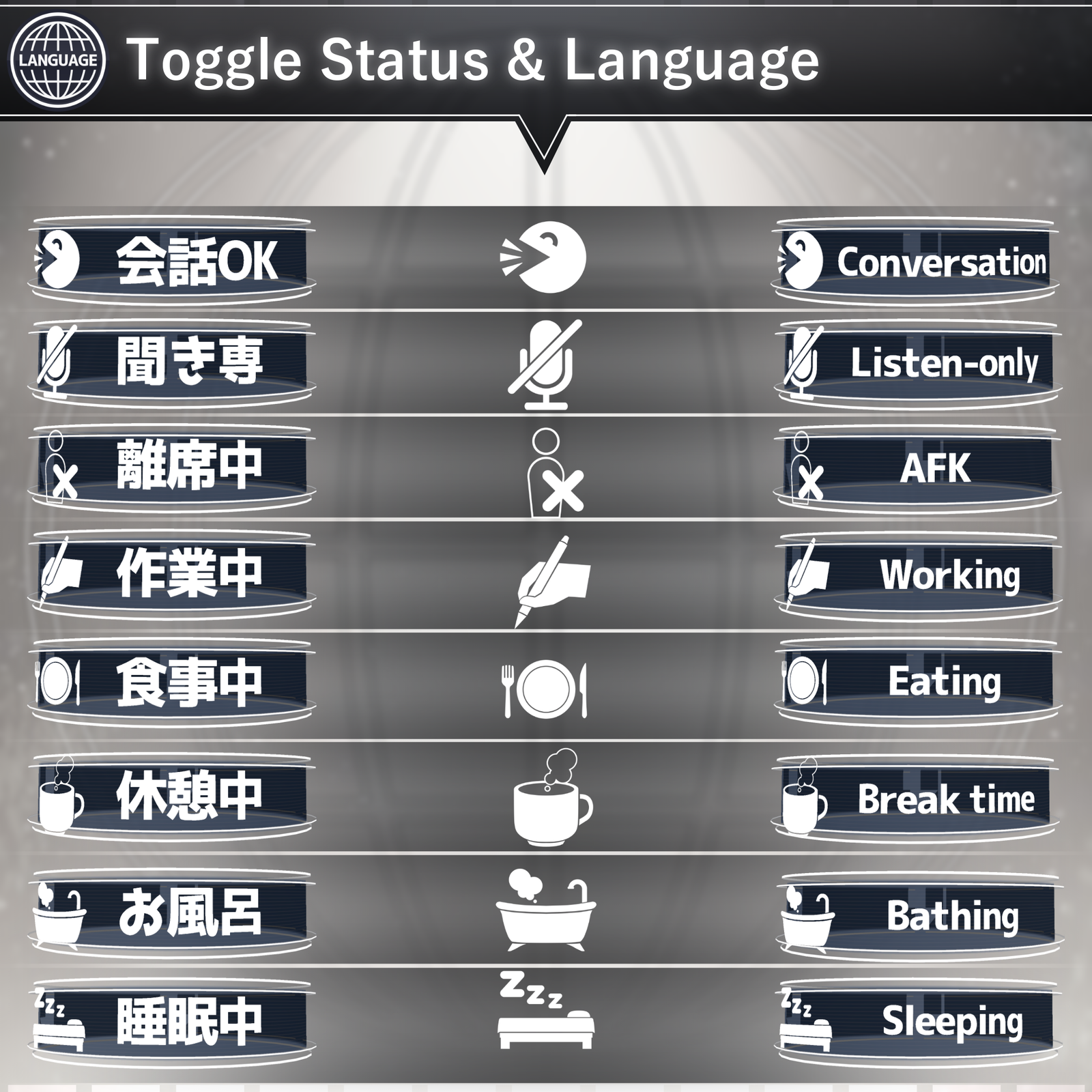 "StatusHalo" is a halo-style accessory for VRChat, featuring a built-in status display. It is compatible with Modular Avatar for a quick and easy setup.