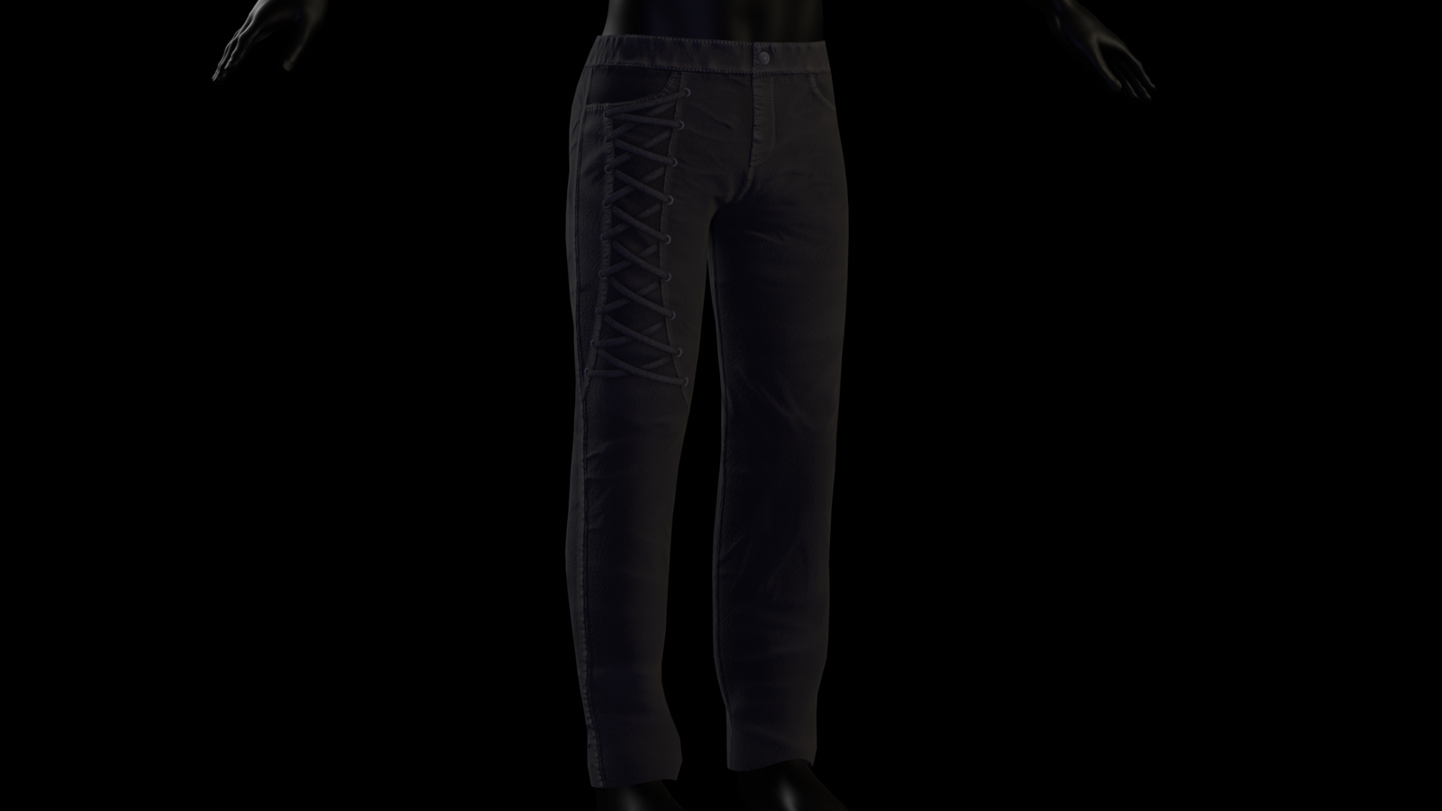 3D Low-Poly Model - Realistic black twill jean-pants with a criss-cross lace design on the right leg.